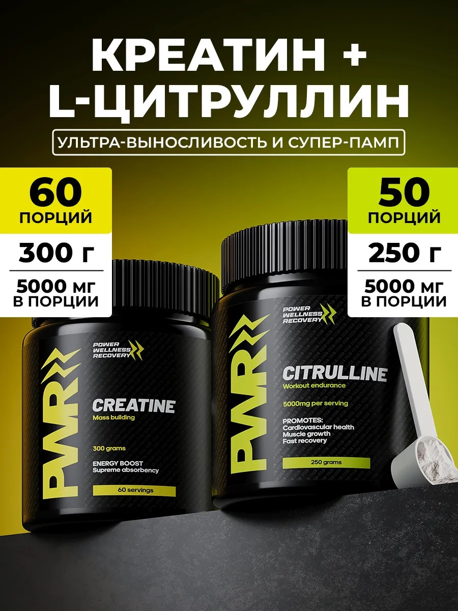 Набор добавок PWR ultimate power для улучшения спортивных результатов и роста мышц: БАД L-Цитруллина DL-Малат 2:1 и креатин порошок моногидрат. Цитруллин малат – аминокислота и важная часть спортивного питания для мужчин и для женщин. Способствует росту мышц и повышает уровень гормона роста и мужскую силу. Биологическая добавка к спортпит citrulline малат также является предтренировочным средством, которое дает дополнительную силу и выносливость для интенсивных тренировок. Креатин – профессиональное спортивное питание. Набор мышечной массы обеспечивается благодаря способности креатина задерживать жидкость в саркоплазме, что придает объем мышцам. Он обеспечивает поддержание здорового обмена веществ и энергетического баланса в организме, повышение вашей работоспособности и выносливости.