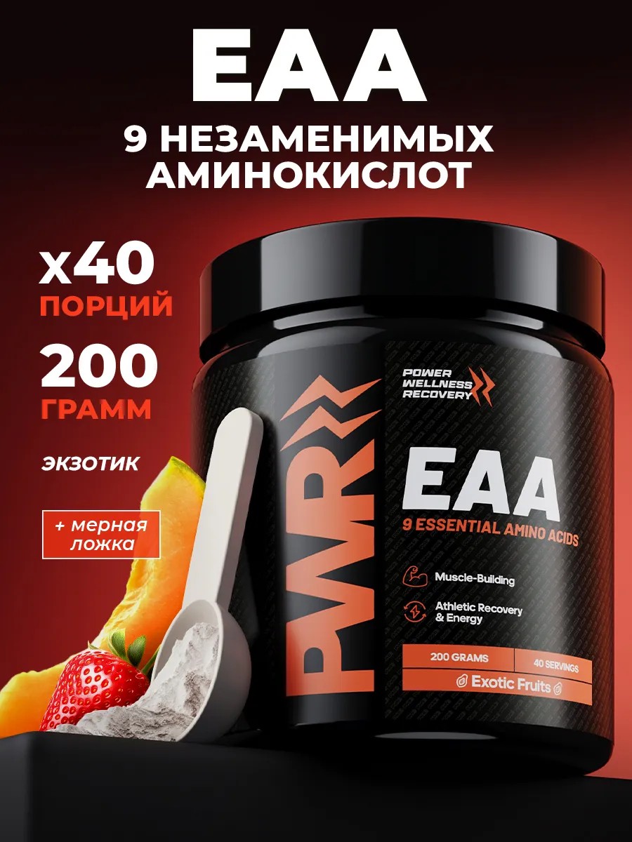 EAA от PWR Ultimate Power со вкусом экзотических фруктов — это высококачественный сухой растворимый порошок, представляющий собой комплекс незаменимых аминокислот, разработанный специально для мужчин и женщин, занимающихся спортом. EAA (экзогенные аминокислоты) активируют синтез мышечного белка, увеличивая мышечную массу после интенсивных тренировок. В процессе физической активности организм может использовать мышечные белки как источник энергии, что приводит к их разрушению. С помощью предтрен еаа аминокислоты вы можете предотвратить этот процесс. Особенно актуально для спортсменов и людей, стремящихся к набору веса. Приём аминокислотного комплекса как спортивного питания уменьшает уровень триптофана в мозге, который вызывает чувство усталости. Он незаменим во время и после тренировки, ускоряет восстановление мышц и уменьшает воспаление, что позволяет быстрее вернуться к активным нагрузкам. Благодаря аминокислотам, таким как лейцин, изолейцин и валин, вы также можете стимулировать иммунные функции организма.