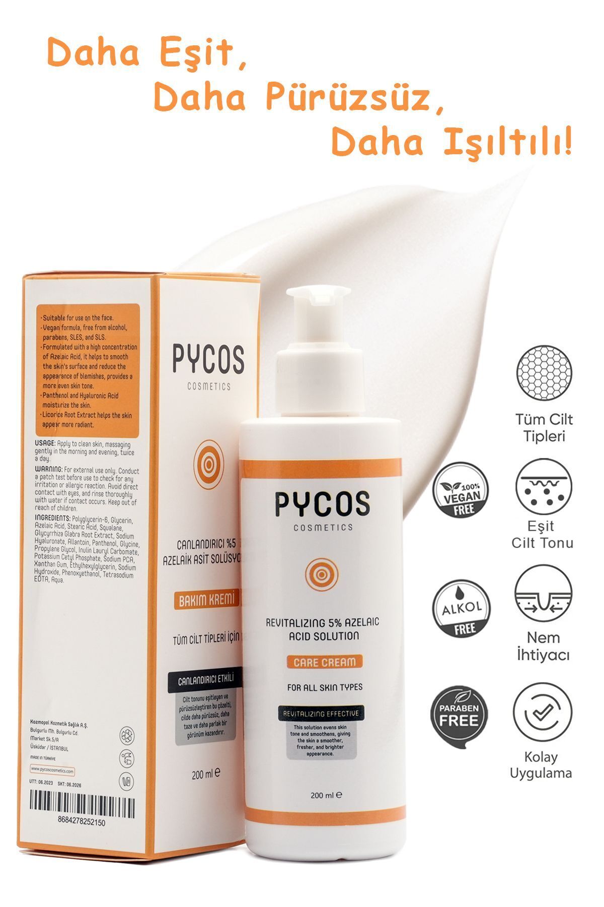 PYCOS COSMETICS Azelaic Acid 5% Skin Care Cream 200 ML Helps to Eliminate Acne Pimples Redness and Blackheads