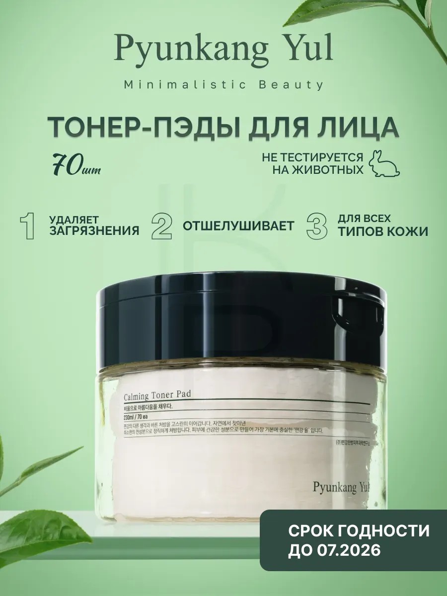 Успокаивающие тонер-пэды PYUNKANG YUL CALMING TONER PAD — это эффективное средство для ухода за кожей лица. Средство представляет собой корейские диски для мягкого пилинга, пропитанные сывороткой, которая помогает очистить кожу, устранить шелушения и придать ей сияние, без жирного блеска. Пилинг для лица Корея с центеллой азиатской обладает противовоспалительным и заживляющим действием, помогает уменьшить покраснения и раздражения на коже, а также способствует устранению зуда. Масло листьев чайного дерева имеет антибактериальные свойства, способствует очищению кожи от прыщей, комедонов и воспалений. AHA и PHA-кислоты мягко отшелушивают омертвевшие клетки кожи, выравнивают её тон и текстуру. Пилинг педы для сужения пор экстрактом коры белой ивы содержит салициловую кислоту, которая помогает контролировать выработку кожного сала. Очищающие пэды для лица Корея подходят для всех типов кожи, в том числе для жирной, чувствительной и проблемной.