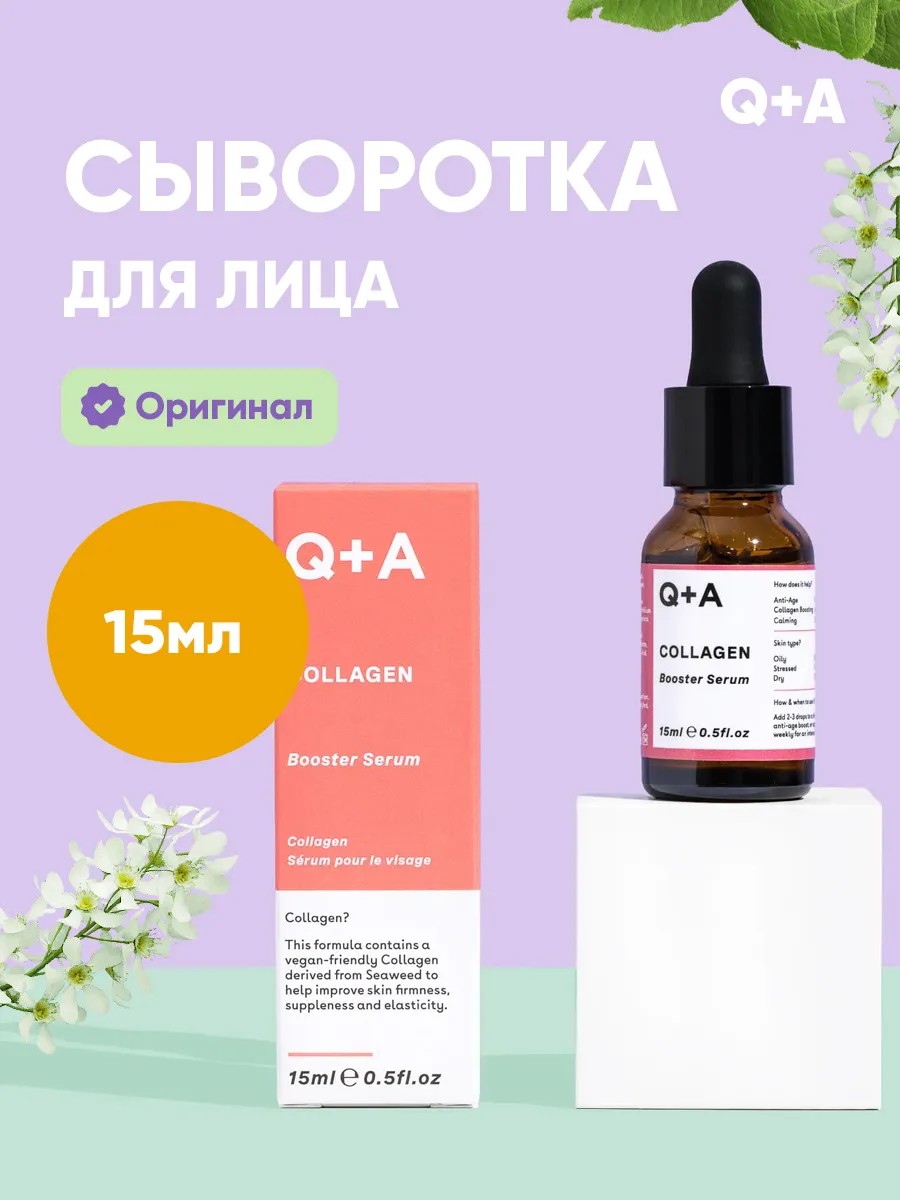 Высококонцентрированная сыворотка q a содержит смесь растительного коллагена, экстрактов семян акации и водорослей, которые помогают подтянуть, разгладить и сделать более упругой кожу, создавая эффект применения филлеров. Идеально подходит для зрелой кожи или для тех, кто переходит на антивозрастной режим, это идеальный способ усилить любой увлажняющий крем, крем для век или сыворотку!
