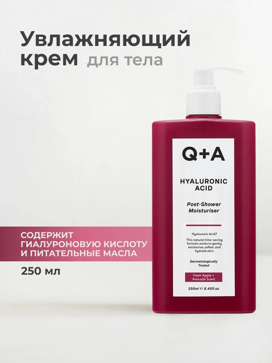 Увлажняющий крем для тела с гиалуроновой кислотой Q+A Hyaluronic Acid (250 мл), разработанный специально для нанесения на влажную кожу, — ваша палочка-выручалочка в ежедневной спешке! Формула крема содержит питательные масла авокадо и лесного ореха, а также пребиотики, чтобы кожа была гладкой и увлажненной. Освежающий аромат свежего яблока и авокадо поднимет настроение. Дерматологически протестирован, подходит для нормальной, комбинированной, сухой и уставшей кожи.