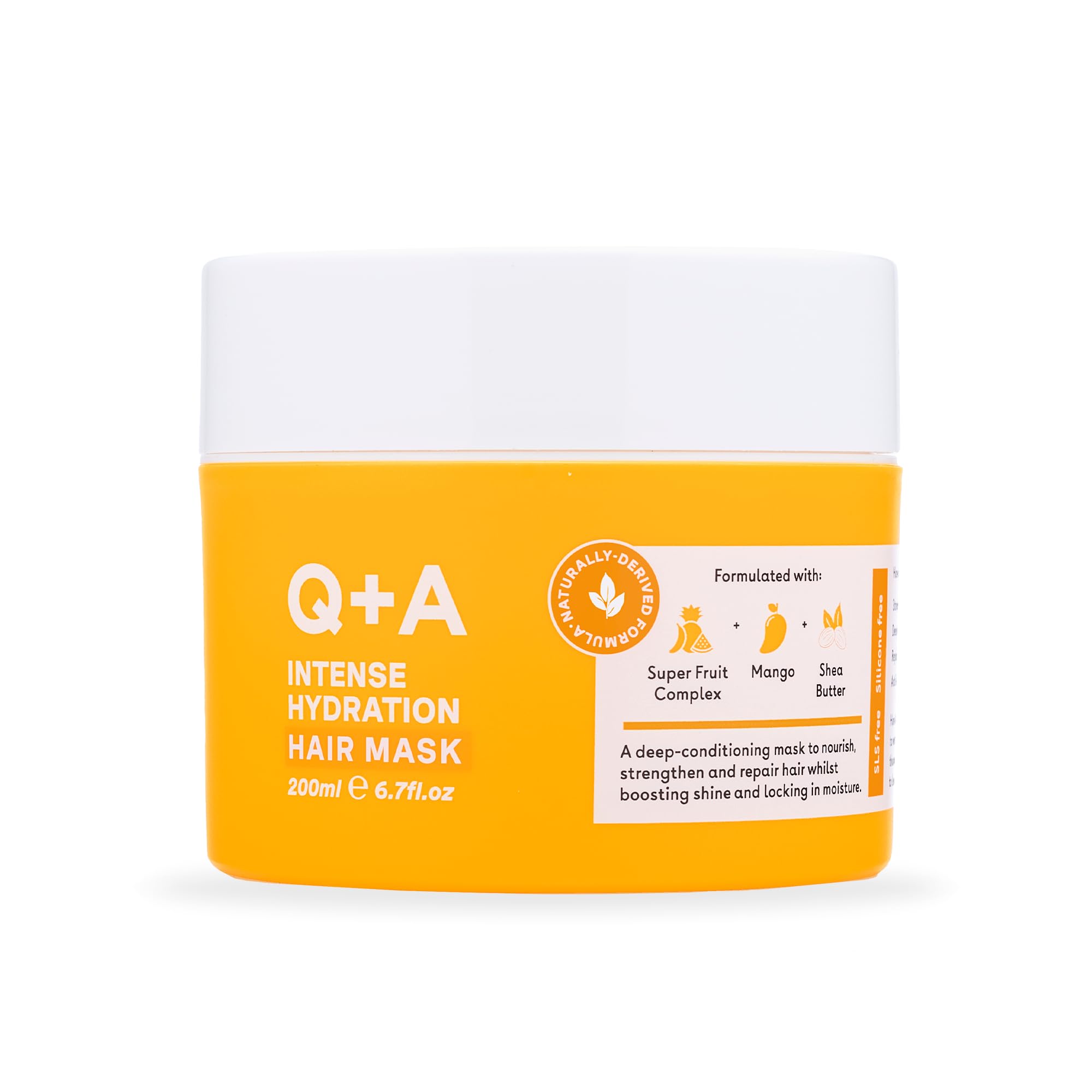 Powerful ingredients with moisturizing care: With a Q A Super Fruit complex of sea buckthorn, cranberry, guarana, jojoba, camu camu, and acerola cherry to defend against stress and boost shine fatty acid-rich mango butter to smooth and soften and shea butter packed with vitamins A and E and antioxidants to deeply nourish. Clean and conscious formula: 96.5 naturally derived. Suitable for vegans, cruelty-free, SLS-free, and silicone-free. Made in the UK with naturally sourced ingredients. Results backed by user testing: In an independent study, 87 said hair felt smoother and silkier after use, 8 out of 10 said hair felt stronger and healthier, and 77 said they would choose it over their current hair mask. Smooth, strong, and frizz-free: Helps restore softness, tame frizz, strengthen lengths, and lock in moisture for healthier, silkier hair after every use. Deep conditioning mask for softer, revitalized hair: This 96.5 natural treatment quenches dry, damaged strands with intense hydration. Perfect for straight, wavy, curly, and coily hair types that need nourishment, strength, and shine.Ingrédients puissants avec soin hydratant : avec un complexe Q A Super Fruit d'argousier, de canneberge, de guarana, de jojoba, de camu camu et de cerise d'acérola pour se défendre contre le stress et stimuler la brillance, le beurre de mangue riche en acides gras pour lisser et adoucir, et le beurre de karité rempli de vitamines A E et d'antioxydants pour nourrir en profondeur. Formule propre et consciente : 96,5 d'origine naturelle. Convient aux végétaliens, sans cruauté envers les animaux, sans SLS et sans silicone. Fabriqué au Royaume-Uni avec des ingrédients d'origine naturelle. Résultats soutenus par des essais d'utilisateurs : dans une étude indépendante, 87 ont déclaré que les cheveux étaient plus lisses et plus soyeux après une utilisation, 8 sur 10 ont déclaré que les cheveux semblaient plus forts et plus sains, et 77 ont déclaré qu'ils les choisiraient plutôt que leur masque capillaire actuel. Lisse, force et anti-frisottis : aide à restaurer la douceur, dompter les frisottis, renforcer les longueurs et retient l'humidité pour des cheveux plus sains et plus soyeux après chaque utilisation. Masque revitalisant en profondeur pour des cheveux plus doux et revitalisés : ce traitement naturel à 96,5 désaltère les mèches sèches et abîmées avec une hydratation intense. Parfait pour les types de cheveux raides, ondulés, bouclés et bouclés qui ont besoin de nourriture, de force et de brillance.Q A Masque capillaire hydratant intense