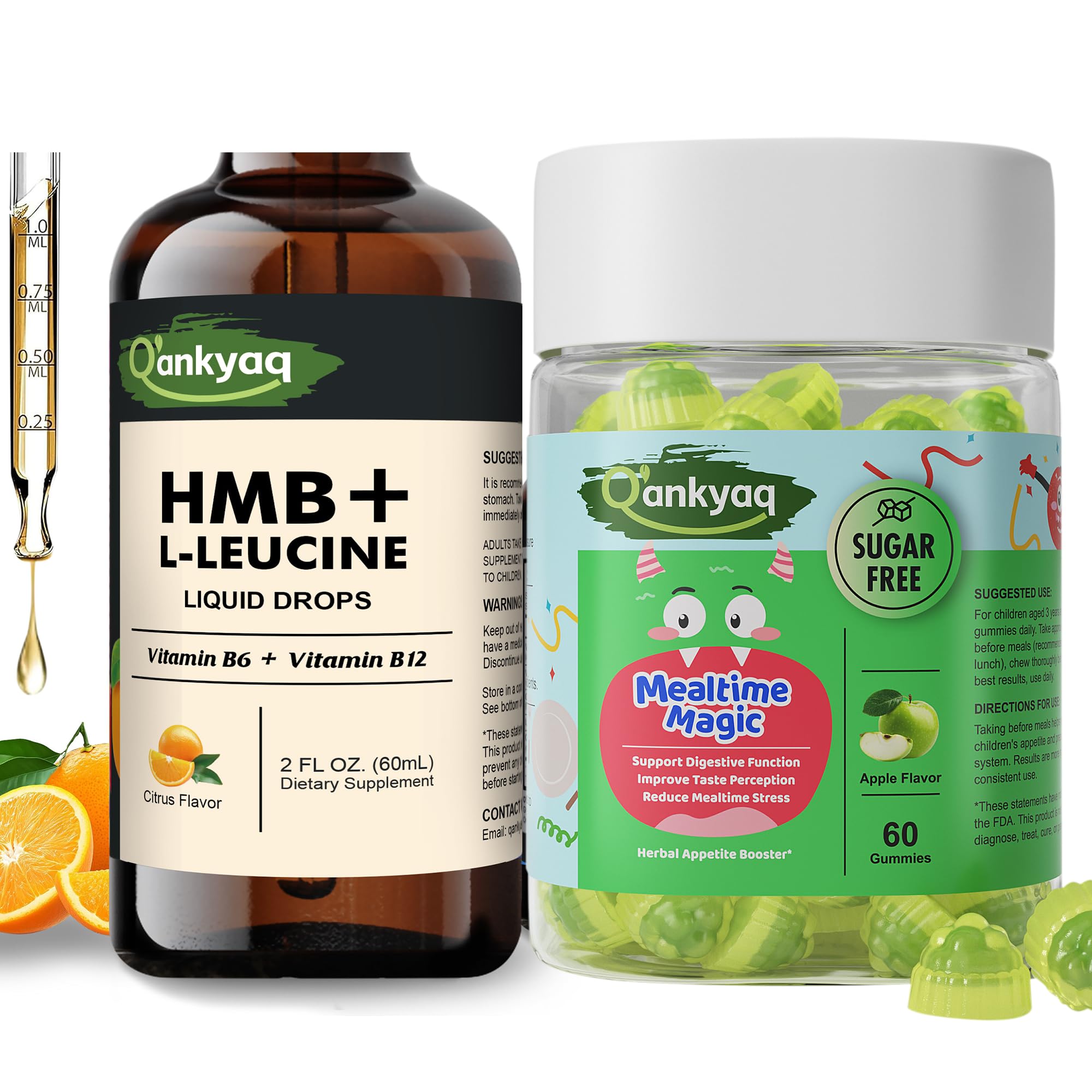 Q'ankyaq HMB L-Leucine Liquid Drops and Appetite Booster Gummies for Kids