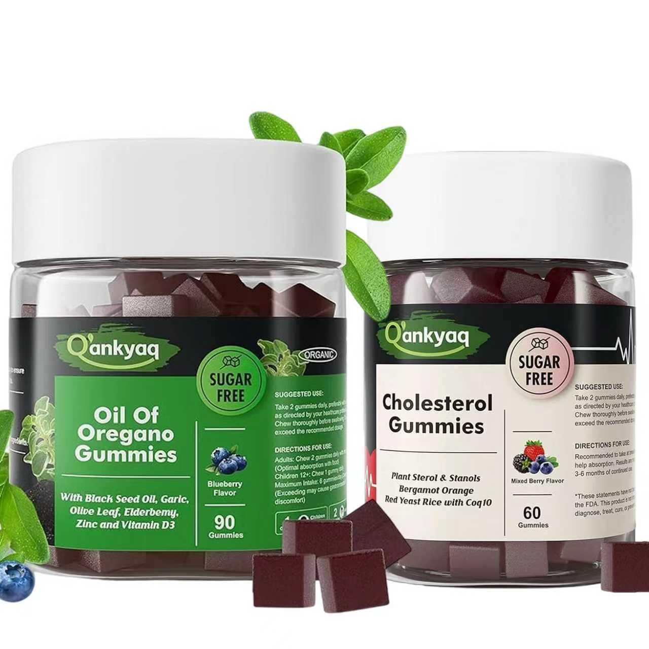 Q'ankyaq Oregano OQ'ankyaq Oregano Oil with Black Seed Oil Organic Gummies and Cholesterol Lowering Supplements Gummiesil with Black Seed Oil Organic Gummies and Cholesterol Lowering Supplements GummiesNATURAL INGREDIENTS, SUGAR FREE: Q'ankyaq's cholesterol gummies are made with no added sugar and pure natural ingredients, free from artificial colors or preservatives, so they won't put any extra strain on your body. Cholesterol gummies are produced in facilities that meet GMP manufacturing standards, ensuring that you get a safe and natural health supplement. SUITABLE FOR MOST PEOPLE: Cholesterol lowering supplements with plant sterols stanols are suitable for most people. Dietary habits tend to be high in fat and sugar. As people age, they tend to prefer diets high in saturated fats, exercise less, and have abnormal lipid levels. Therefore, people over the age of 40 need these supplements more, especially postmenopausal women. TRIPLE SYNERGY FOR LOWERING CHOLESTEROL: Cholesterol lowering supplements feature a proprietary blend containing 1600mg of plant sterols stanols, 200mg of red yeast rice, 100mg of citrus bergamot, and 100mg of CoQ10. The combination of plant sterols stanols and red yeast rice works to double-dip LDL levels. Citrus bergamot helps increase HDL. CoQ10 ensures safety. Enhanced with Black Seed Oil, Garlic Olive Leaf – Triple Defense We've included Black Seed Oil (rich in Thymoquinone), Garlic Extract (a natural immune booster), and Olive Leaf Extract (antioxidant support) to provide enhanced immune defense, gut health benefits, and heart support. These ingredients work together to help you feel your best every day. 6-in-1 Herbal Formula – Immune Antioxidant Support Each gummy is packed with 6 powerful ingredients: Oil of Oregano (20:1 extract), Black Seed Oil, Garlic Extract, Olive Leaf, Elderberry, Zinc, and Vitamin D3. These herbal extracts are well known for their immune-boosting and antioxidant properties, helping to defend your body and maintain overall wellness.