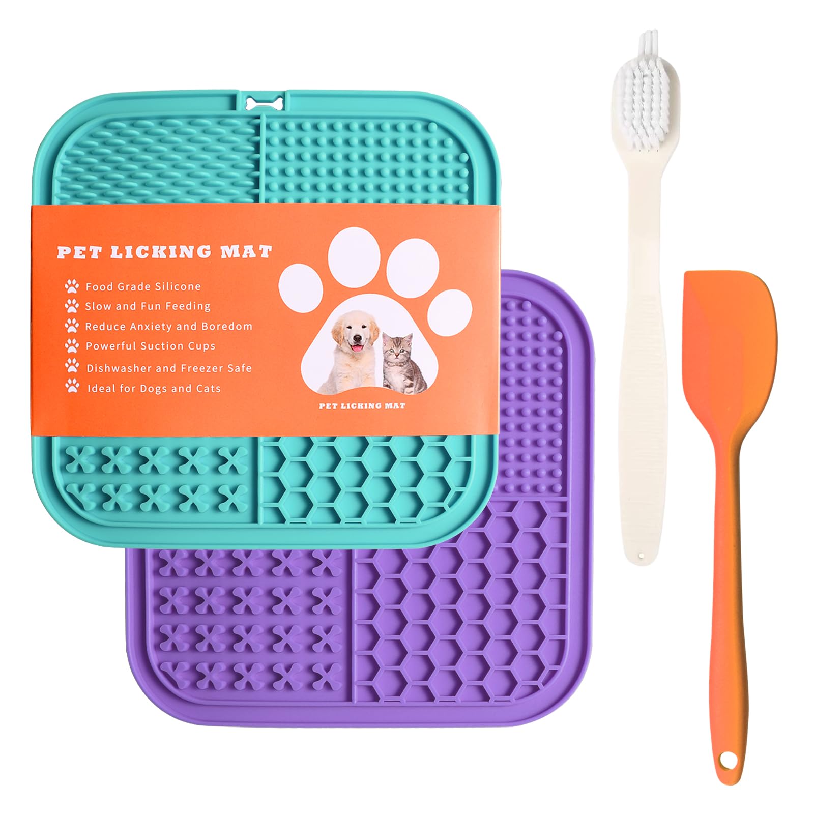 Delete mats for dogs spatulaSlow food dispenser and multifunctional- With four different texture designs, our licky mats effectively slow down your pet's pace, prevent flatulence and promote better digestion.Use it as a slow food bowl or for various treats such as peanut butter, yogurt, nuts and more.Lindering fears and boredom- Studies have shown that repeated licking in dogs can release endorphins, which contributes to alleviating fears and reducing destructive behavior.Our Licky Mats are perfect for calming your pet on visits to vet visits, claw cutting and stressful situations.Funds dental health- The structured surfaces of our Licky Mats promote pleasant licking and help to scrape away from the tongue of your pet.This ensures healthier teeth, healthier gums and a fresher breath of your furry companion.Safe and durable- Our Licky Mats are made of high -quality, food -safe silicone, which makes it safe and extremely flexible with a strong suction effect.The robust design ensures a long service life and they are easy to clean because they are dishwasher -safe.Entertaining and soothing- Make fur care, bathing and pet care for your furry friend for pleasure with our Licky Mats for Dogs.Simply spread your favorite delicacies on the mat to stay concentrated and calm in these activities.Leckmatten für Hunde SpachtelLangsamer Fressspender und multifunktional– Mit vier verschiedenen Texturdesigns verlangsamen unsere Licky Mats effektiv das Fresstempo Ihres Haustiers, verhindern Blähungen und fördern eine bessere Verdauung. Verwenden Sie ihn als langsamen Fressnapf oder für verschiedene Leckereien wie Erdnussbutter, Joghurt, Nüsse und mehr. Lindert Ängste und Langeweile– Studien haben gezeigt, dass wiederholtes Lecken bei Hunden Endorphine freisetzen kann, was dazu beiträgt, Ängste zu lindern und destruktives Verhalten zu reduzieren. Unsere Licky Mats eignen sich perfekt zur Beruhigung Ihres Haustiers bei Tierarztbesuchen, beim Krallenschneiden und in Stresssituationen. Fördert die Zahngesundheit– Die strukturierten Oberflächen unserer Licky Mats fördern das angenehme Lecken und helfen dabei, Speisereste und Bakterien von der Zunge Ihres Haustiers abzukratzen. Dies sorgt für gesündere Zähne, gesünderes Zahnfleisch und einen frischeren Atem Ihres pelzigen Begleiters. Sicher und langlebig– Unsere Licky Mats sind aus hochwertigem, lebensmittelechtem Silikon gefertigt, was sie sicher und äußerst flexibel mit starker Saugwirkung macht. Das robuste Design sorgt für eine lange Nutzungsdauer und sie sind leicht zu reinigen, da sie spülmaschinenfest sind. Unterhaltsam und beruhigend– Machen Sie Fellpflege, Baden und Haustierpflege für Ihren pelzigen Freund zum Vergnügen mit unseren Licky Mats für Hunde. Breiten Sie einfach ihre Lieblingsleckereien auf der Matte aus, um bei diesen Aktivitäten konzentriert und ruhig zu bleiben.Q Line schleckmatte Hund Hellblau, Lila lickimat - Stark Saugen Tassen mit Spatel Bürste - Langsam Feeder für Hund (Packung mit 2) Nylon Hellblau und Lila