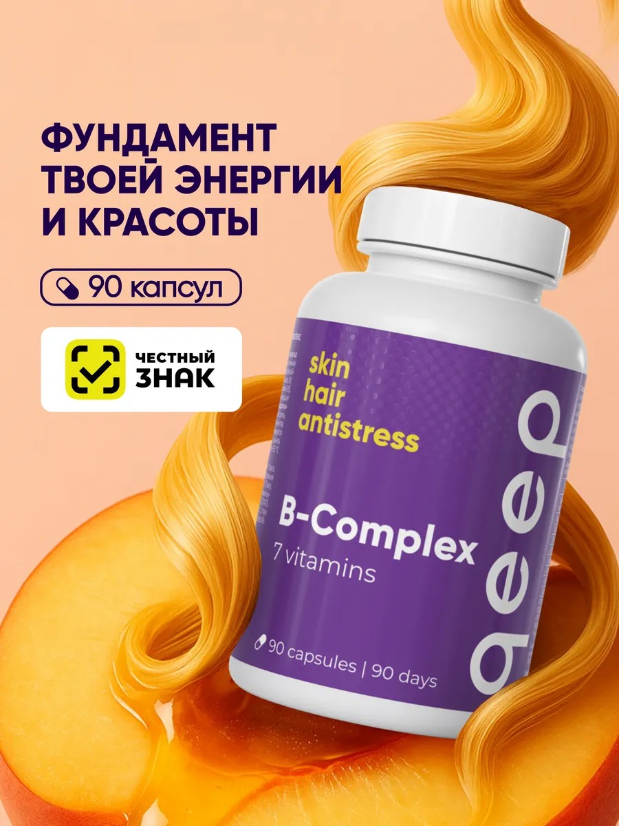 Бренд qeep (КИП) заботится о вашем здоровье, красоте и молодости! Представляем вам универсальную доступную питьевую биологически активную добавку для мужчин женщин, пожилых людей и подростков к пище в форме капсул с порошком.Это новый органический укрепляющий премиум продукт для здоровья эксклюзивная новинка на российском рынке. На производстве осуществляется многоступенчатый контроль качества. B-Complex - идеальный набор витаминов группы В (1 2 3 5 6 9 и 12) в легкодоступной форме, которые обязательны организму в любом возрасте. Подходит для ежедневного применения в качестве укрепления иммунной системы. Помогает повысить, укрепить и улучшить иммунитет. Витаминный набор для поддержания бодрости, энергии, сил и работоспособности, а также стабилизации нервной системы (ЦНС).Укрепляет нервную систему человека и улучшает мыслительные способности для ума и повышения эффективности работы головного мозга, внимания и памяти. Улучшает состояние кожи, слизистых оболочек, ногтей и против выпадения волос. Комплексная пищевая добавка полезна для улучшения зрения и способствует выработке гемоглобина, его поднятия. Минеральная биодобавка помогает нормализовать венозное и артериальное высокое или низкое давление (от гипертонии) и стимулирует работу сердечно-сосудистой системы. Регулирует уровень сахара в крови, нормализует жировой обмен, что положительно сказывается на вашем весе. Разгоняет метаболизм нервных тканей за счет выработки ацетилхолина. Поддерживает лимитный и белковый обмен. Способствует похудению, блокирует переедание уменьшает (для снижения) излишнюю массу тела. Натуральные минералы способствуют лёгкому протеканию беременности (для беременных), развитию эмбриона, а также нормализации эмоционального фона и уровня стресса до и после родов. Участвует в процессах роста и деятельности нервной системы, способствует образованию эритроцитов. Предотвращает развитие анемии. Защищает от УФ-излучения, выработка эритроцитов, поддержка репродуктивной системы. Рекомендации по применению: Взрослым по 1 капсуле в день во время еды. Продолжительность приёма - 1 месяц. При необходимости прием можно повторить. Рекомендуется для спортсменов, в том числе профессиональных, как дополнение к спортивному (спорт) питанию. А так же для последователей ЗОЖ (здоровый образ жизни) и ПП (правильное питание). Без сахара и ГМО. Противопоказания: индивидуальная непереносимость компонентов, беременность и кормление грудью. Перед применением рекомендуется проконсультироваться с врачом.