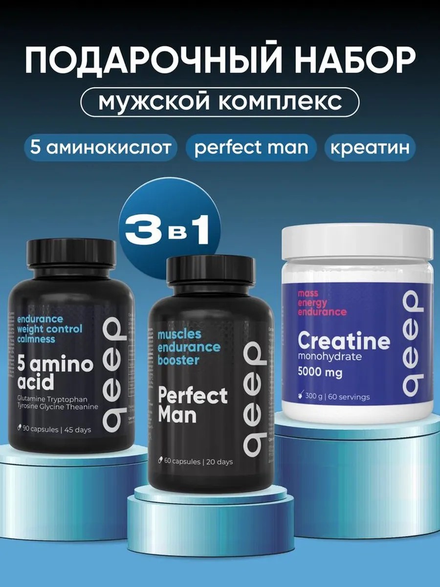 | Комплектация | Perfectman 60 капсул, Креатин 300 г, 5 аминокислот 90 капсул |