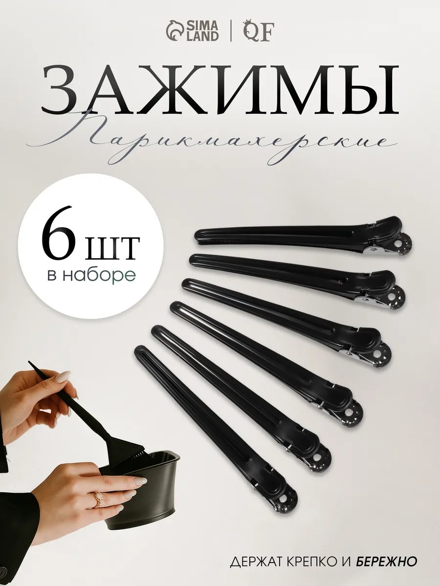 Зажимы — отличный выбор для создания стильных причесок. Этот набор создан для помощи в повседневной укладке и экспериментах над образом. Они подходят как для профессионального использования в парикмахерских, так и домашних условий. Заколка — аксессуар, который добавит изюминку вашему образу. В комплект входит шесть предметов, обеспечивающих надежную фиксацию волос. Пластиковый материал гарантирует долговечное использование. Элегантное украшение, подчеркивающее нежность кудрей или строгость прямых линий челки.