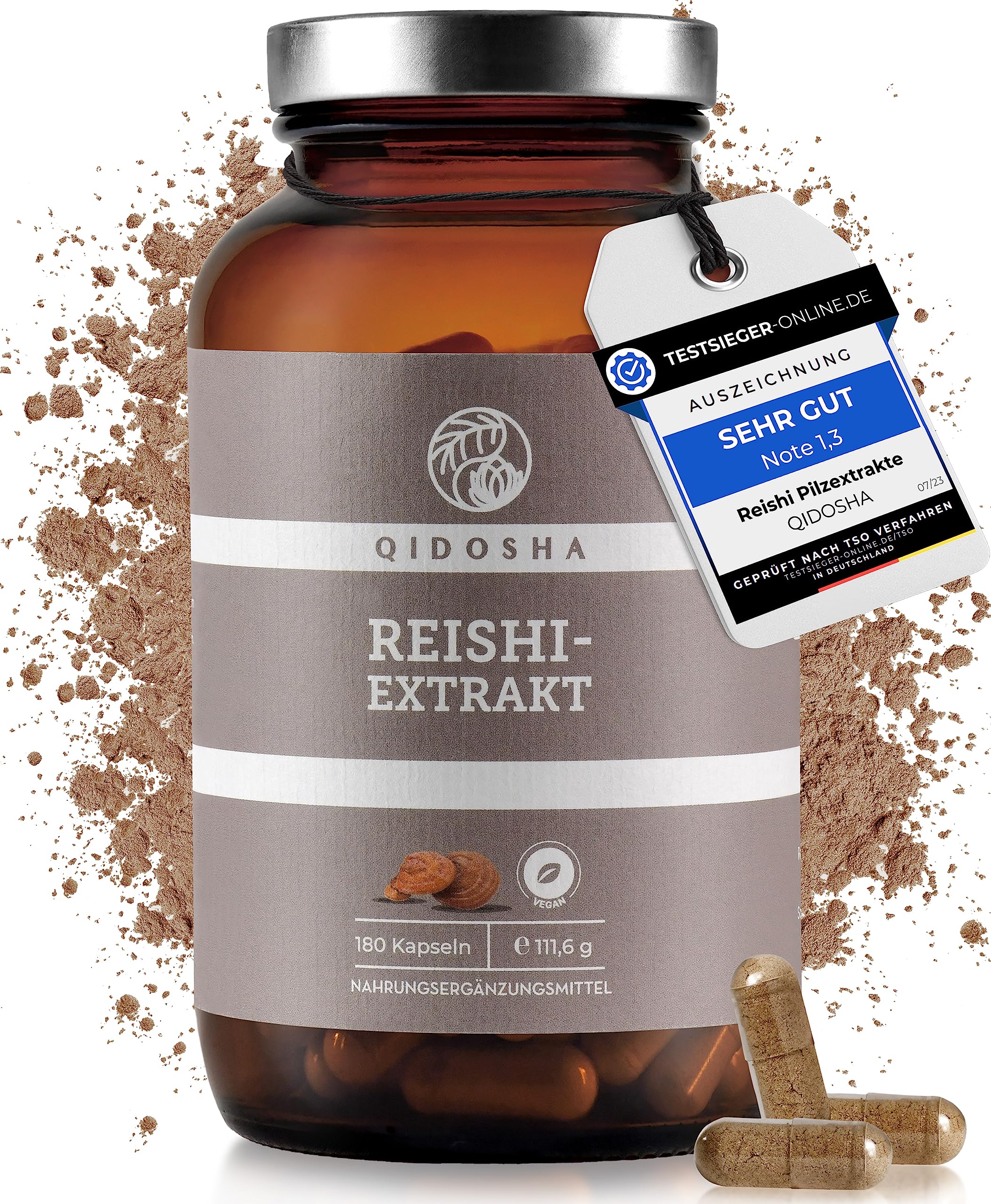 Excellent quality - *test winner 07/2023 in the ""Reishi Extracts"" category with the overall grade of 1.3 (""test winner online"").Highly concentrated - we use a premium 15: 1 extract;This means that 1 kg of our Reishi extract is obtained from 15 kg mushroom powder.Made in Germany - Our Reishi extract capsules are carefully manufactured in Germany and each batch is thoroughly checked by an external, certified laboratory (including for ethylene oxide (ETO)).Glass & paper instead of plastic - our Reishi mushroom extract is supplied exclusively in glass containers or refill bags.We completely do without plastic.Glass does not release any substances on the content (microplastics!) And is therefore also 100% tasteless.The brown pharmacy glass protects the capsules inside the inside of harmful UV radiation.High -quality ingredients - the Reishi extract capsules contain only high -quality and tested raw materials.Compared to conventional mushroom powder products, fungus contain extracts that are relevant to the body's polysaccharides (beta-glucane) in much higher concentration.High bioavailability-our Reishi capsules are highly dosed by using the Shellbroken process, which breaks the chitin cell wall of the mushroom, optimally made available for the human body.Water & ethanol extract- so that both the valuable fat (especially polyphenols and triterpenes) and the water-soluble (especially beta-glucane) are extracted from the Reishi mushroom Ganoderma lucidum.