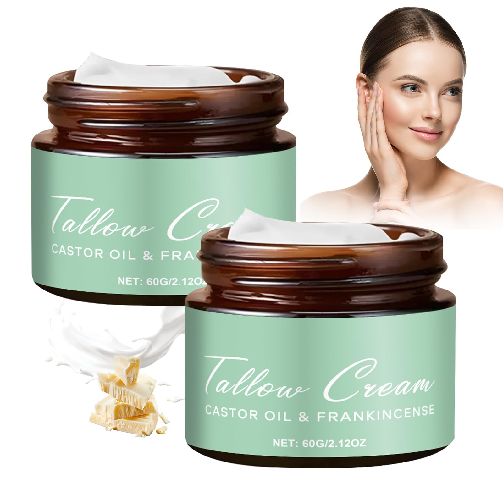 HOW TO USE To get optimal results, take an appropriate amount of moisturizer cream on the palm of your hand, and apply evenly onto clean, dry skin. Massage gently until fully absorbed. Bring an overall feeling of comfort to your skincare routine. SCOPE OF APPLICATION Not only plays a major role in the face but also Beef Tallow for skin can be used on the hands, legs, back and other parts of the body, Beef Tallow for skin can give all-round hydration and moisturization of the whole body skin. MOISTURIZATION AND NON-STICKY This Beef Tallow Cream melts on the face, leaving the skin non-sticky and easily absorbed. Whether you have oily, dry, or combination skin, refreshing effect you can count on our cream to nourish and moisturize your skin. PREMIUM INGREDIENTS Made from organic Beef Tallow Grass-fed, Castor Oil, and Frankincense Oil. Grass-fed Beef Tallow uses high-quality which can hydrate your skin deeply and keep it moisturized and soft to offer exceptional skincare. BEEF TALLOW CASTOR OIL FRANKINCENSE Grass-fed Beef Tallow with Castor Oil Frankincense has a refreshing texture, one application will continue to infuse the skin with the moisture it needs, keeping our skin hydrated and radiant all the time.