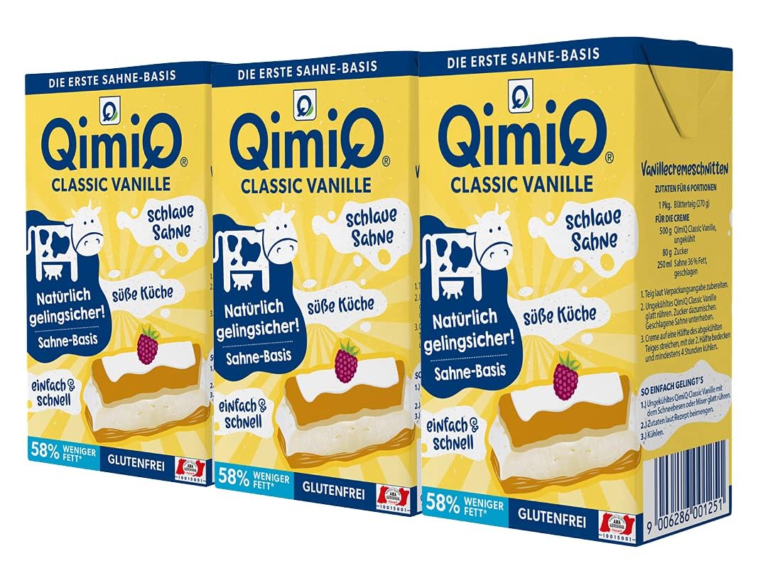 Qimiq Classic Vanilla is a natural cream product with only 15 fat.Only fresh milk of the highest quality is used for the production of Qimiq Classic.In addition to 93 Austrian cream, Qimiq Classic vanilla also contains cheekatatin (beef), strength, sugar, vanilla extract, aroma, beta -carotene.Qimiq Classic vanilla is ideal for the sweet kitchen.How do I use Qimiq ClassicCut the pack completely.Stir unheated Qimiq Classic.Add the desired ingredients.What do I have to considerQimiq Classic is cut in the package and must be stirred smoothly before use.Ideal for spreads, dips, dressings, stab -resistant fillings, cut -resistant cake fillings, terrines, mayonnaise without egg.Shelf life Qimiq Classic is unopened at least 12 months at room temperature.Open Qimiq Classic can be kept in the fridge for 3 to 4 days.delivery 3 × Qimiq Classic vanilla 250g qimiq recipe books.Real cream - best quality only 15 fat simple, fast, successful no gelatin necessary binds liquids and oil gluten -free.awarded the AMA seal of approval - quality from Austria!Ideal for spreads, dips, dressings, stab -resistant fillings, cut -resistant cake fillings, terrines, mayonnaise without egg.QIMIQ Classic is ideal for the spicy and sweet cold cuisine.QIMIQ Classic is a natural cream product with only 15 fat.Only fresh milk of the highest quality is used for the production of Qimiq Classic.In addition to 99 Austrian cream, Qimiq Classic contains 1 chestboard (beef).QimiQ Classic Vanille ist ein natürliches Sahneprodukt mit nur 15 Fett. Für die Herstellung von QimiQ Classic wird ausschließlich frische Milch von höchster Qualität verwendet. Neben 93 österreichischer Sahne enthält QimiQ Classic Vanille noch Speisegelatine (Rind), Stärke, Zucker, Vanilleextrakt, Aroma, Betacarotin. QimiQ Classic Vanille eignet sich hervorragend für die süße Küche. Wie verwende ich QimiQ ClassicPackung ganz aufschneiden. Ungekühltes QimiQ Classic glatt rühren. Gewünschte Zutaten dazugeben. Was muss ich beachtenQimiQ Classic ist in der Packung schnittfest und muss vor der Verwendung glatt gerührt werden. Ideal für Aufstriche, Dips, Dressings, stichfeste Füllungen, schnittfeste Tortenfüllungen, Terrinen, Mayonnaise ohne Ei. Haltbarkeit QimiQ Classic ist ungeöffnet mindestens 12 Monate bei Zimmertemperatur haltbar. Geöffnetes QimiQ Classic ist im Kühlschrank 3 bis 4 Tage haltbar.Lieferumfang 3× QimiQ Classic Vanille 250g QimiQ Rezepthefte. Echte Sahne – beste Qualität Nur 15 Fett Einfach, schnell, gelingsicher Keine Gelatine notwendig Bindet Flüssigkeiten und Öl Glutenfrei. Ausgezeichnet mit dem AMA-Gütesiegel - Qualität aus Österreich! Ideal für Aufstriche, Dips, Dressings, stichfeste Füllungen, schnittfeste Tortenfüllungen, Terrinen, Mayonnaise ohne Ei. QimiQ Classic eignet sich hervorragend für die pikante und süße kalte Küche. QimiQ Classic ist ein natürliches Sahneprodukt mit nur 15 Fett. Für die Herstellung von QimiQ Classic wird ausschließlich frische Milch von höchster Qualität verwendet. Neben 99 österreichischer Sahne enthält QimiQ Classic 1 Speisegelatine (Rind).QimiQ Classic ein natürliches Sahneprodukt (Vanille, 3x250g) Vanille 3x250g