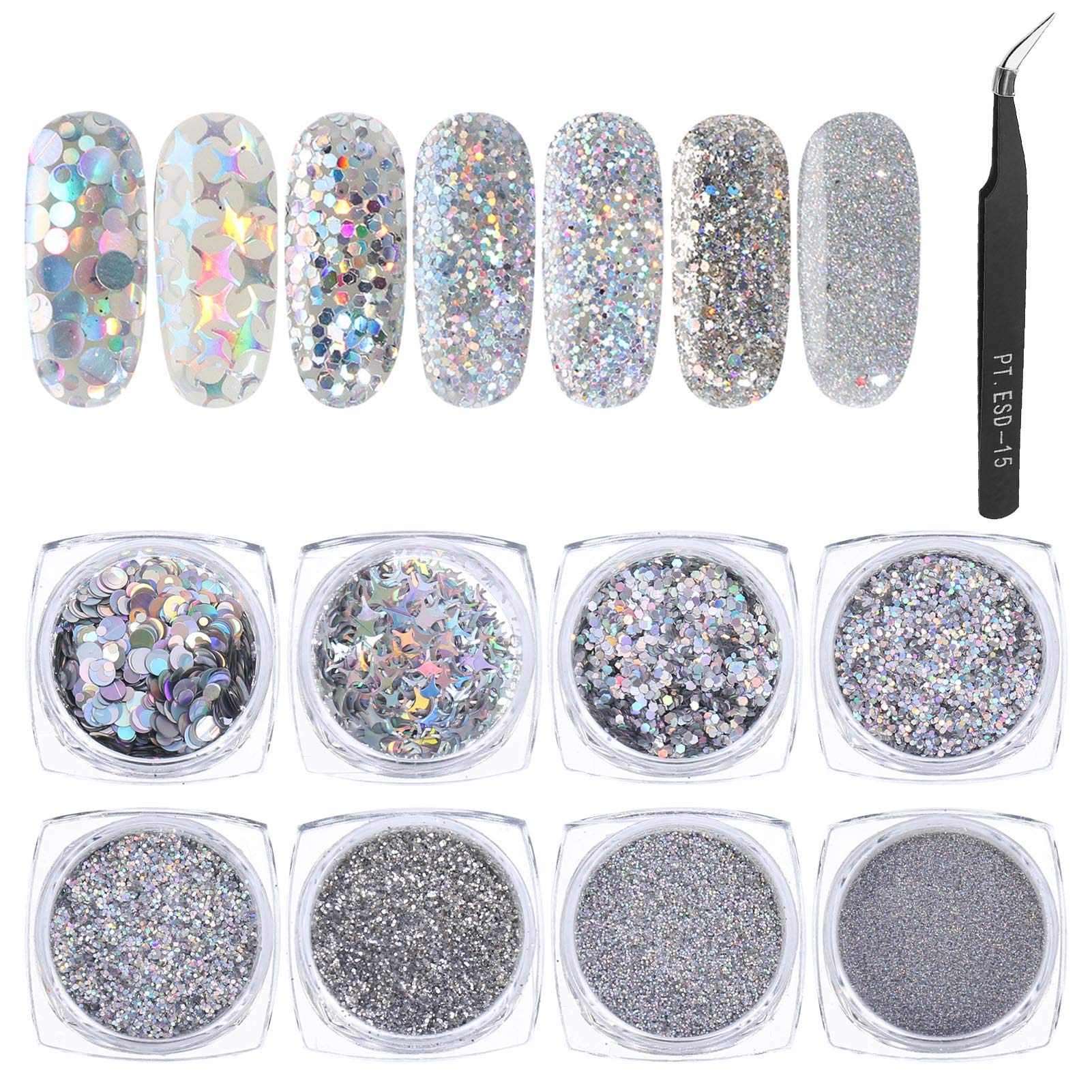 Description Holographic nail art sequins glitter kits nails powder flakes metallic shining silver nail glitter design for nails art decoration manicure. specification Item type: glitter powder nails Material: Plastic Size: Mixed sizes Package content: 8 boxes Silver Nail Art Glitter Set, 1 piece of tweezers Characteristics Suitable for professional use or home use and nail studio. Suitable for applying to UV-Gelnail acrylic nails natural nails etc. Suitable for stage appearance, go out, graduation ceremony, costume party and so on. How to make sequins: Polish and clean nails as in the normal manicure process 1. Select your nail polish color. 2. Select the color of your sequins.You should fit together, the contrast should be good. 3. Apply a primer.You need it to protect your nails. 4. Apply two thin layers of the nail polish you choose. 5. Press the sequins on your nails. 6. When the sequins are small, just spill them on your nails. 7. Wait alternatively until your nail polish has dried.Then use nail glue to glue the sequins. 8. Apply a lid lacquer so that the sequins do not drop. Makeup beauty instructions: 1. Apply Liquid Eyeshadow or another glittering or lotion to your eyes. 2. Use the eyelash glue to glue the flakes as an eyeliner on your eyelid. 3. Sprinkle your hair braids for summer pool parties.additional tools: Our package contains tweezers for easy use.It is suitable to attach large sequins on nails, faces or other handicrafts.Multiple use: The nail glitter flocculus set is very suitable for 3D nail art, flat nail art, handicrafts, Christmas decoration, face, body, fingernails, cell phone cover, invitation card, toenails, etc. Easy operation: Suitable for professionals or beginners.Nail glitzerset perfect for natural or artificial nails.And can be combined with all UV gel nail polishes and all nail powder.High quality: Glossy nail glitter powder consists of high -quality materials that can be carried safely on the skin.Can also be used with hair gel or glittering so that your glitter stays longer and can be easily removed with water.Quantity: Nail glitter flakes have 8 different shapes.Each shape is delivered with a small plastic box that protects it from leaving.Enough glitter powder can meet the needs of your DIY nail art.Beschreibung Holographische Nail Art Pailletten Glitter Kits Nails Powder Flakes Metallic Shining Silber Nail Glitter Design für Nails Art Decoration Maniküre. Spezifikation Item Type: Glitzerpulver nägel Material: Kunststoff Größe: Gemischte Größen Packungsinhalt: 8 Schachteln Silver Nail Art Glitter Set, 1 Stück Pinzette Eigenschaften Geeignet für den professionellen Gebrauch oder den Heimgebrauch und Nagelstudio. Geeignet zum Auftragen auf UV-Gelnägel Acrylnägel Naturnägel etc. Geeignet für Bühnenauftritt, Ausgehen, Abschlussfeier, Kostümparty und so weiter. Wie man Paillettennägel macht: Nägel polieren und reinigen wie beim normalen Maniküreprozess 1. Wählen Sie Ihre Nagellackfarbe. 2. Wählen Sie die Farbe Ihrer Paillette. Sie sollten zusammenpassen, der Kontrast sollte gut sein. 3. Tragen Sie eine Grundierung auf. Sie brauchen es, um Ihre Nägel zu schützen. 4. Tragen Sie zwei dünne Schichten des von Ihnen gewählten Nagellacks auf. 5. Drücken Sie die Pailletten auf Ihre Nägel. 6. Wenn die Pailletten klein sind, verschütten Sie sie einfach auf Ihre Nägel. 7. Warten Sie alternativ, bis Ihr Nagellack getrocknet ist. Verwenden Sie dann Nagelkleber, um die Pailletten zu kleben. 8. Tragen Sie einen Decklack auf, damit die Pailletten nicht abfallen. Makeup Beauty Anleitung: 1. Tragen Sie Liquid Eyeshadow oder eine andere Glitzergrundierung oder Lotion auf Ihre Augen auf. 2. Verwenden Sie den Wimpernkleber, um die Flocken als Eyeliner auf Ihr Augenlid zu kleben. 3. Streuen Sie für Sommer-Poolpartys auf Ihre Haarzöpfe.ZUSÄTZLICHE WERKZEUGE: Unser Paket enthält eine Pinzette zur einfachen Verwendung. Es ist geeignet, große Pailletten an Nägeln, Gesichtern oder anderen Bastelarbeiten zu befestigen. MEHRFACHE NUTZUNG: Das Nagel-Glitzer-Flockenset eignet sich sehr gut für 3D-Nagelkunst, flache Nagelkunst, Kunsthandwerk, Weihnachtsdekoration, Gesicht, Körper, Fingernägel, Handyhülle, Einladungskarte, Zehennägel usw. EINFACHE BEDIENUNG: Geeignet für Profis oder Anfänger. Nagelglitzerset perfekt für natürliche oder künstliche Nägel. und kann mit allen UV-Gel-Nagellacken und allen Nagelpulvern kombiniert werden. HOHE QUALITÄT: Glänzendes Nagelglitterpulver besteht aus hochwertigen Materialien, die sicher auf der Haut getragen werden können. Kann auch mit Haargel oder Glitzergrundierung verwendet werden, damit Ihre Glitzer länger bleiben und sich leicht mit Wasser entfernen lassen. MENGE: Nagelglitterflocken haben 8 verschiedene Formen. Jede Form wird mit einer kleinen Plastikbox geliefert, die sie vor dem Auslaufen schützt. genug Glitzerpulver kann die Bedürfnisse Ihrer DIY Nagelkunst erfüllen.QINREN 8 Box Glitzerpulver Nägel Glitzer Nagel Pailletten Nail art Glitter mit Pinzette für Nägel Decals,Körper Glitzer Pulver,Epoxidharz Deko