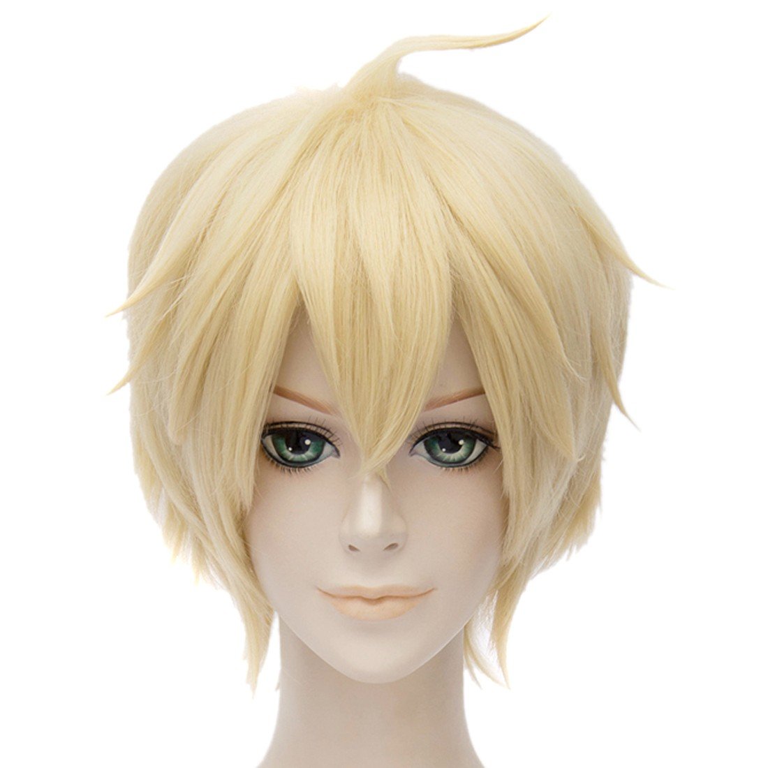 QITUN.Z Seraph Of The End Mikaela Hyakuya Short Pale Gold Full Wigs Hair Cosplay Anime
