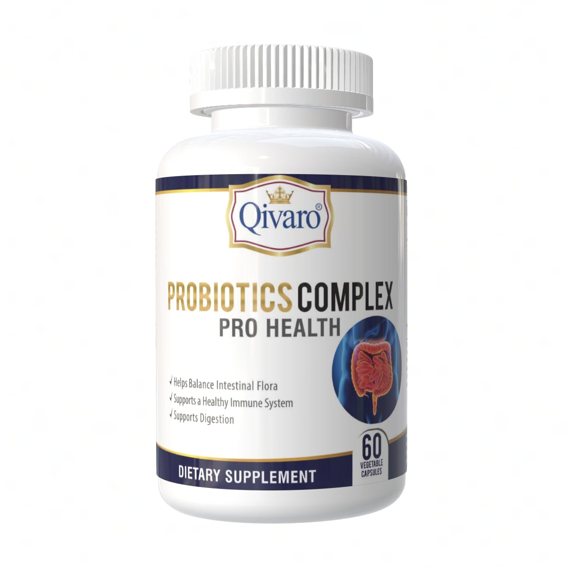Qivaro Probiotic Complex Pro Health - Digestive Balance and Immune Support - Natural and Organic Supplement - Daily Probiotic Support - Vegan and Non-GMO - Made in USA 60 Capsule
