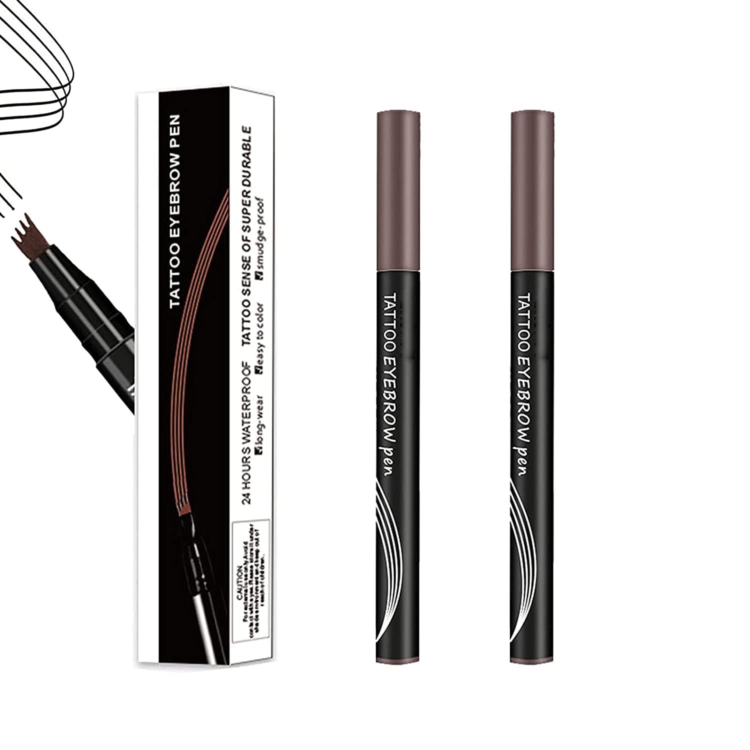 QOBNN 4Tip Microblade Brow Pen Long Lasting Waterproof and SmudgeProof New Eyebrow Pencil 4 Point Brow Pen Professional Eyebrow Definer Brow Pen Stays on All Day Color 2*Grey