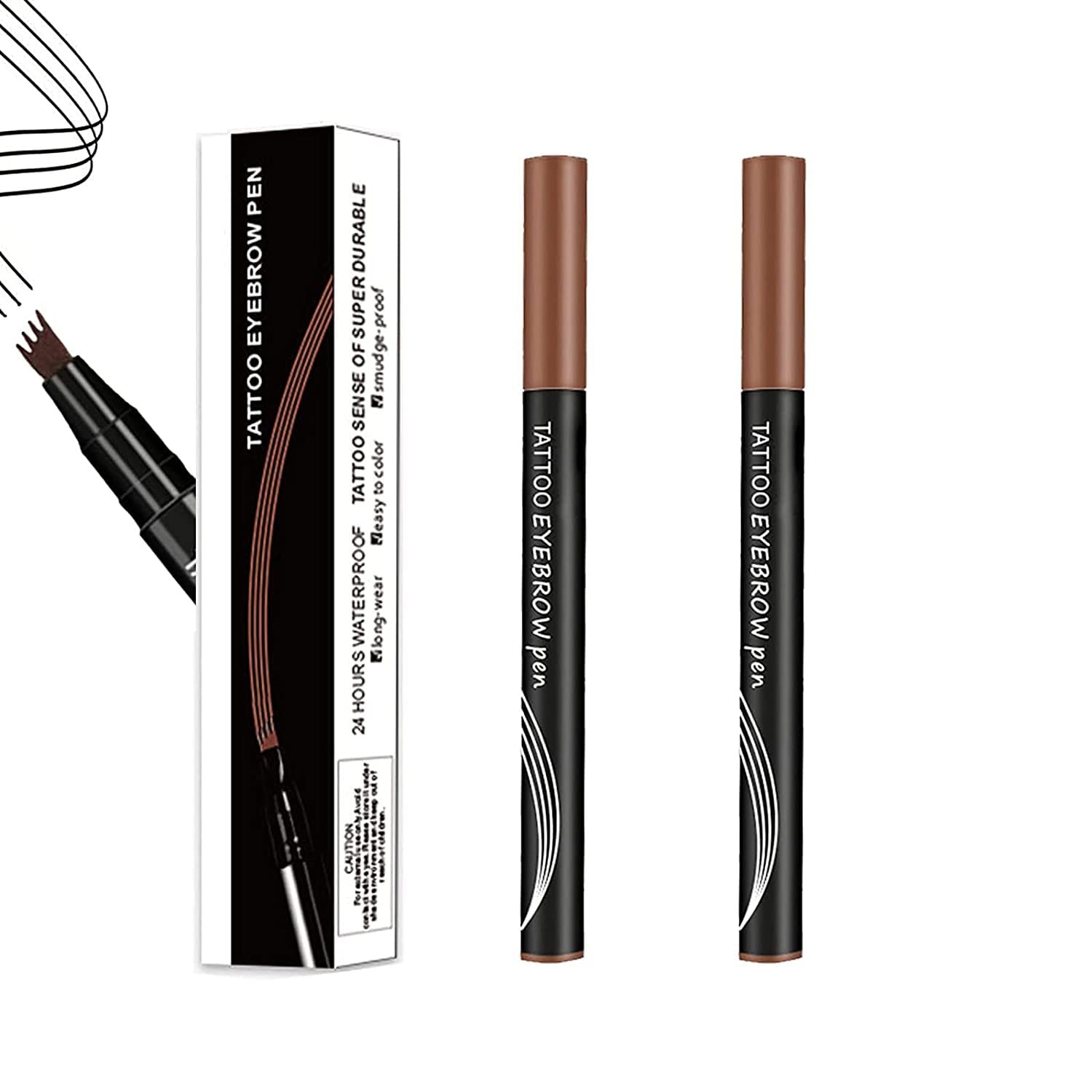QOBNN 4Tip Microblade Brow Pen Long Lasting Waterproof and SmudgeProof New Eyebrow Pencil 4 Point Brow Pen Professional Eyebrow Definer Brow Pen Stays on All Day Color 2*Light Brown