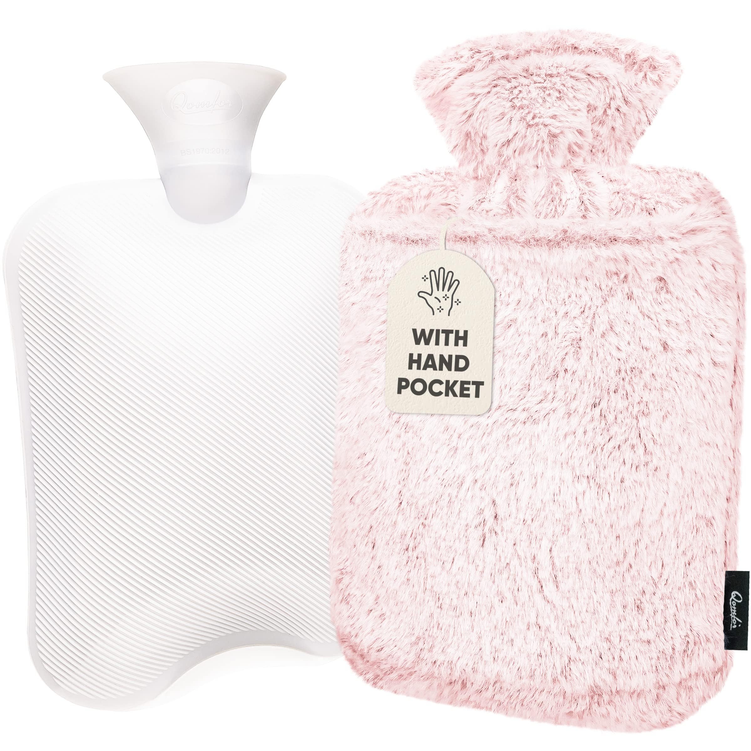 WE CARE ABOUT YOU: Qomfor offers premium quality lifestyle products to improve your well-being. Our team is always available to help you get the most out of your purchase. 100 Satisfaction guaranteed. Improve your personal comfort and purchase Qomfor's hot water bottle with a kangaroo pocket now . DURABLE, SAFE TO USE AND ECO-FRIENDLY: The bottle is BS1970:2012 compliant, the globally used British Safety Standard for hot water bottles, meaning it is leakproof and durable. The hot-water bottle and cover are eco-friendly and baby and kids safe. CAUTION: an adult should always supervise and never fill with boiling water. EASY TO USE: With its wide mouth it is easy to fill and use. The hot bag for pain relief is mulitfunctional. Use it for menstrual cramps, sore muscles, during pregnancy or as a feet warmer. The cover (100 polyester) is washable. KEEPS YOU WARM FOR HOURS: The hot water bottle with cover is designed to retain heat to ensure your comfort. The soft covers distribute the heat evenly and protect you against excessive heating. It is ideal as bed warmer and a great eco-friendly alternative for a heating pad. SOFT FLUFFY LUXURIOUS COVER TO SOOTHE YOU: The 1.8 liter bottle comes with a premium cover with a kangaroo pocket. It is ideal for a cosy night with a glass of wine on the couch on a chilly evening. Especially in the winter, the hot water bottle cover will soothe you.