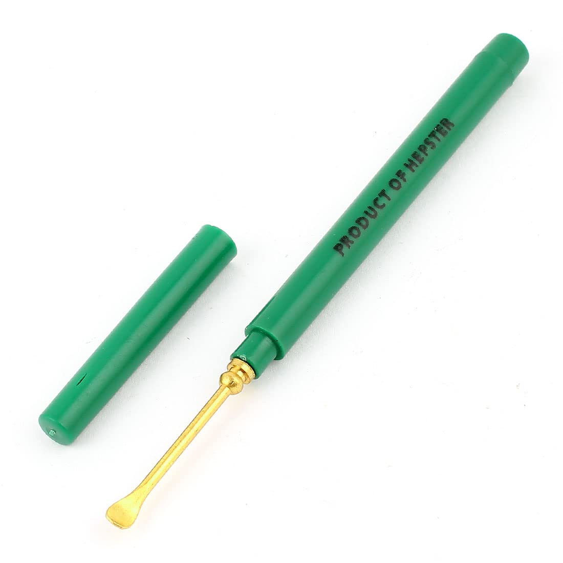Package Content : 1 x Earpick. Weight : 3g. Size : 105 x 7mm / 4" x 0.28"(L*D). Color : Green ,Gold Tone. Product Name : Earpick;Material : Plastic ,Metal.