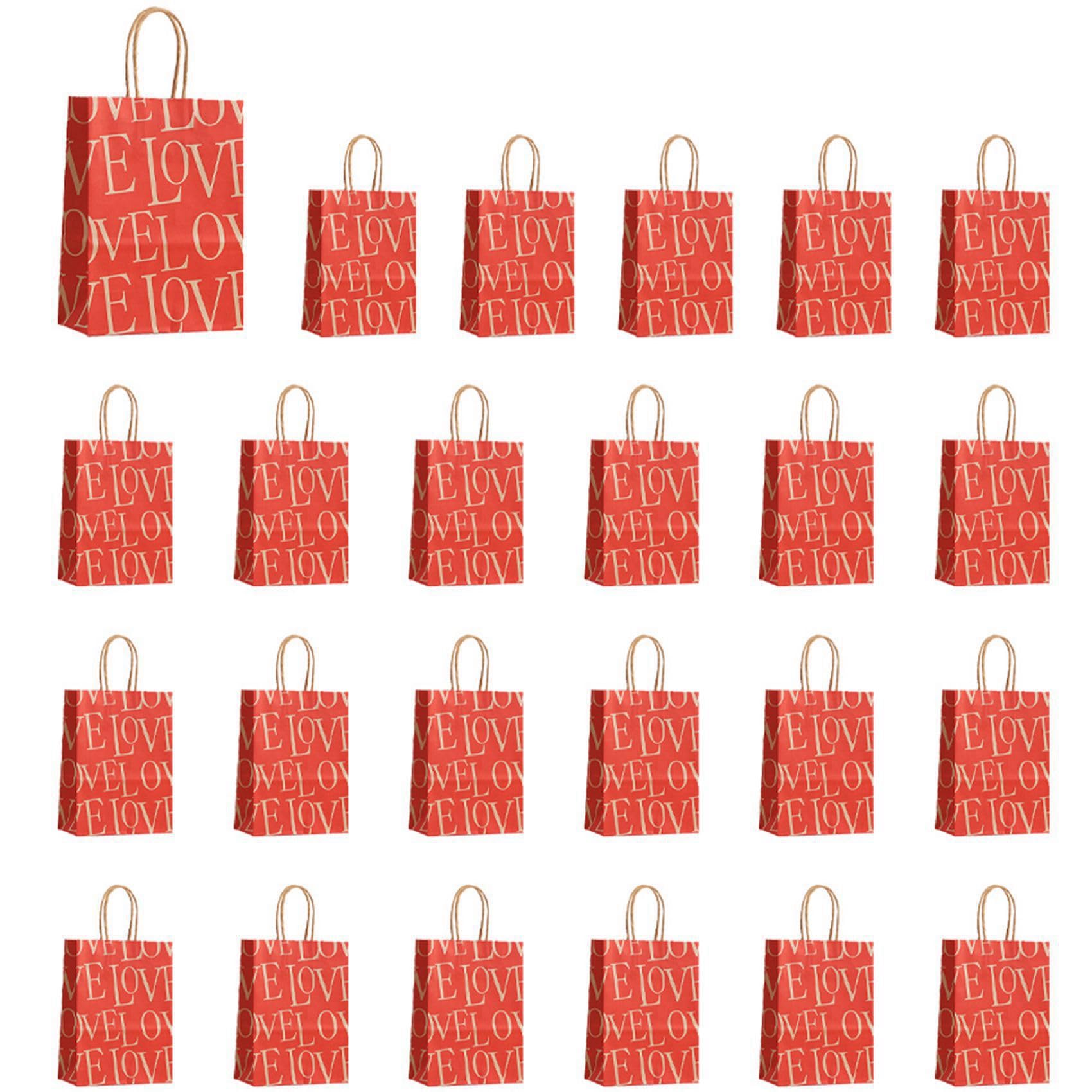 Qtynudy E 24 Pcs Valentines Day Candy Bags Goodie Bags with Handles Heart Love Paper Bags for Wedding and Valentine