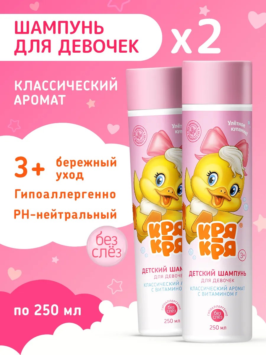 Шампунь детский для девочек Кря-Кря обеспечивает нежный и бережный уход, мягко очищает волосы малыша. Натуральные масла и витамины, входящие в состав, питают кожу головы и защищают её от пересыхания. Обеспечивает легкое расчесывание. Шампунь обладает приятным классическим ароматом, который очень нравится детям. Не щиплет глазки, без слез. Без парабенов, сульфатов, красителей. Гипоаллергенно. Идеально для Вашего ребенка. Предназначен для ежедневного ухода с 3-х лет.