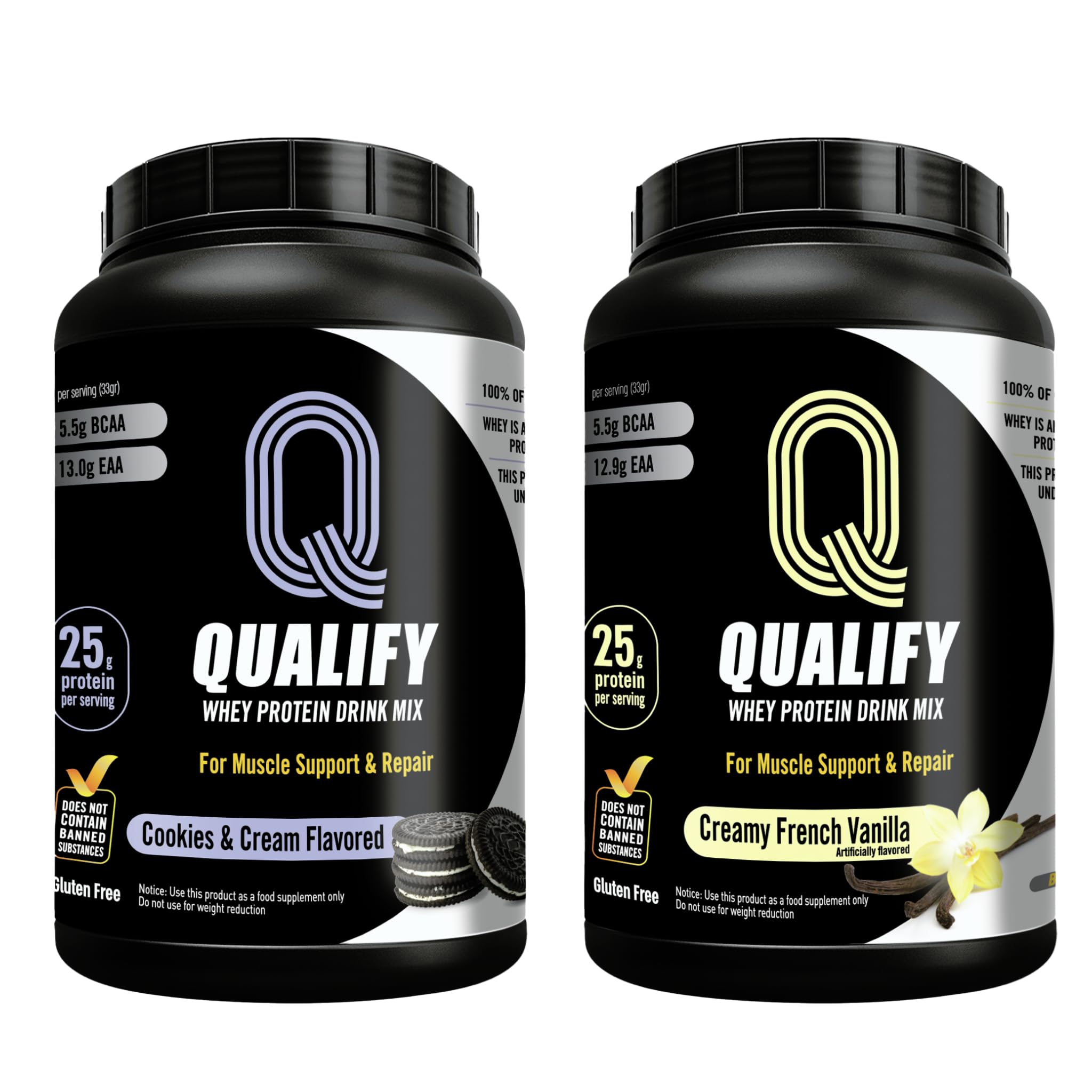 Qualify Cookies and Cream + French Vanilla Whey Protein Powder Bundle - Gluten-Free 25g Protein 5.5g BCAA 2.7g Leucine 1.4g Isoleucine 1.4g Valine