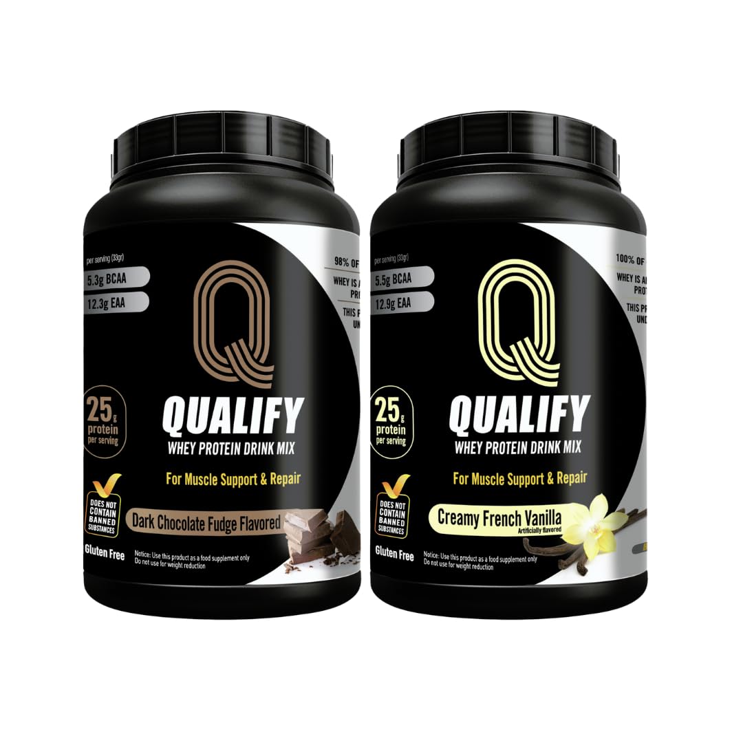 Qualify Creamy French Vanilla + Dark Chocolate Fudge Whey Protein Bundle Gluten-Free Kosher Post-Workout