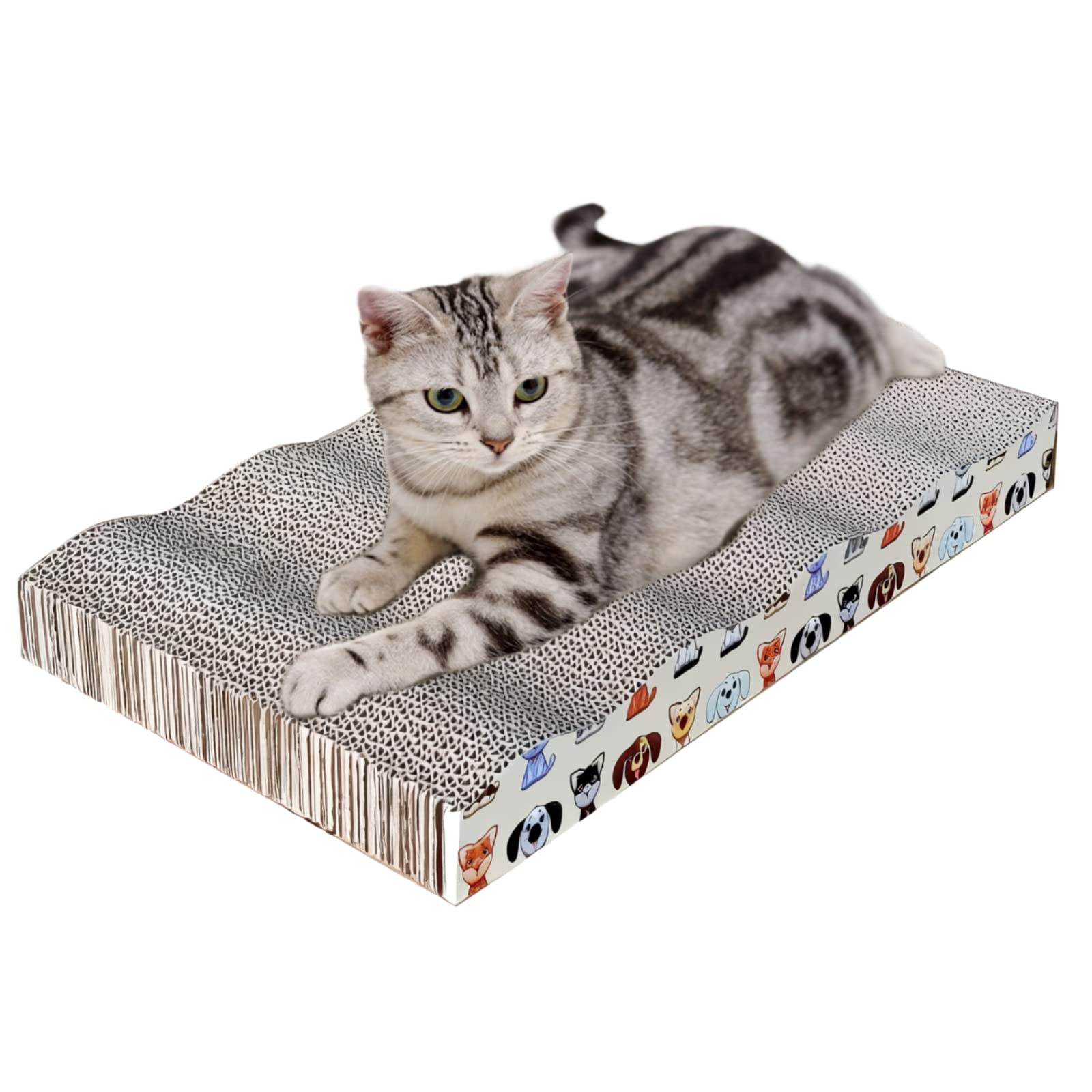 Keep Your Cat Active: Helps your cat relieve stress and keeps them active.High Quality Material: Made from 100 high density, specialy thickened and hardened cardboard. Usable Dual Sided Shapes: Built to Last with two usable Sides with different shapes(flat or wavey). Protect Your Belongings: Keep your Funiture and clothes safe from your cats natural urges to scratch and claw. Keep Your Cat Active: Helps your cat relieve stress and keeps them active.