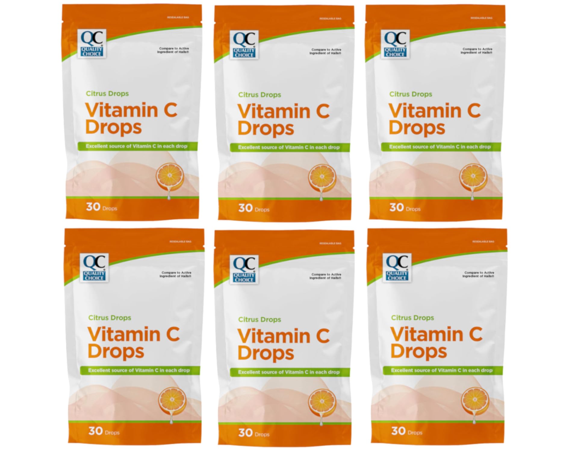 Quality Choice Citrus Drops Vitamin C Immune System Support 30 Count - 6 Pack