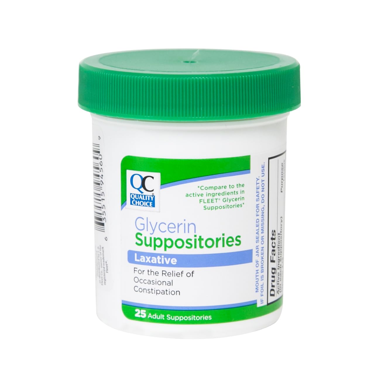 Quality Choice Fast-Acting Adult Glycerin Suppositories for Occasional Constipation Relief. Gentle Predictable Bowel Movement Within 15 Minutes to 1 Hour 25 Count
