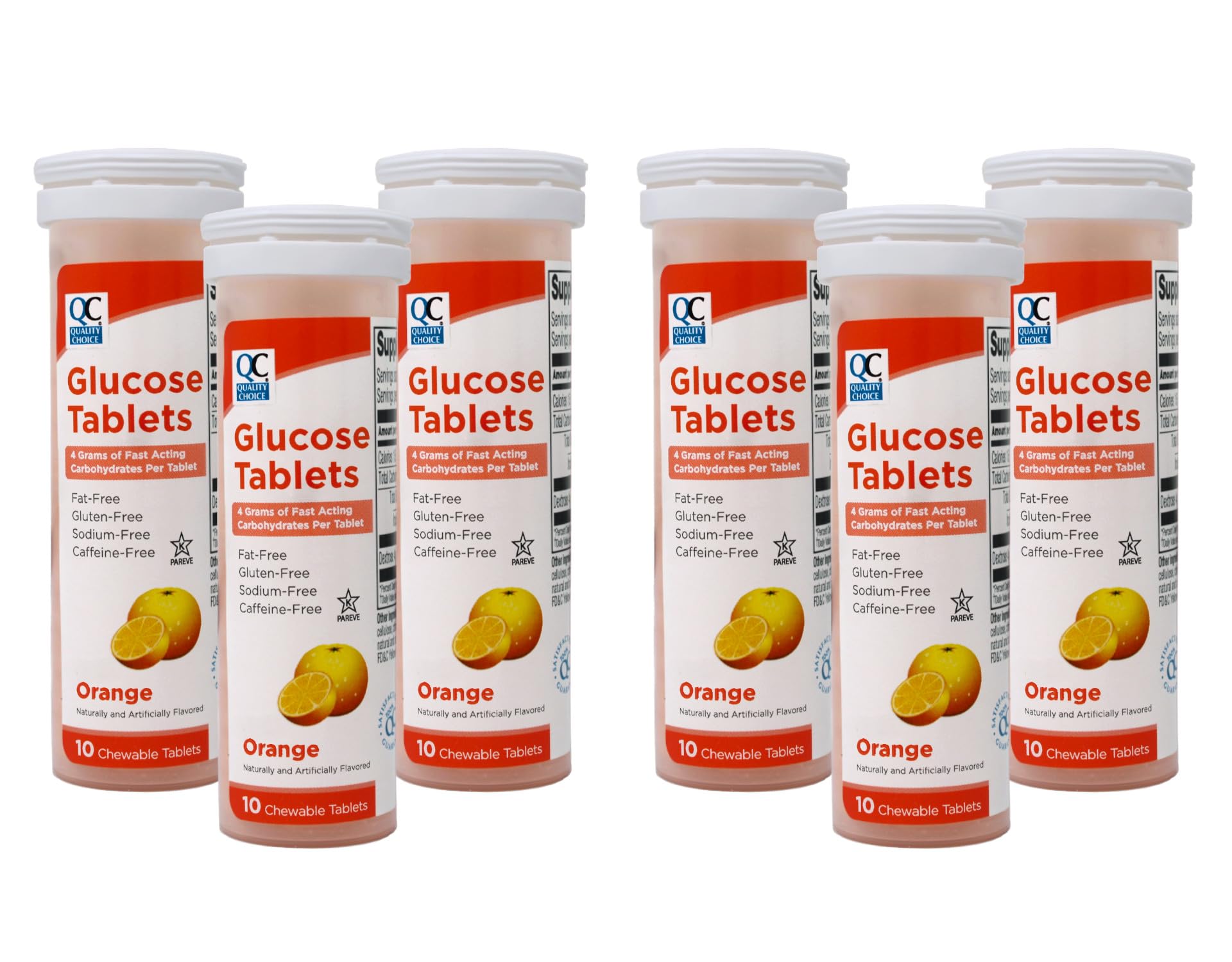 Quality Choice Fast Acting Glucose Tablets Orange Flavor Blood Sugar Treatment 10 Count - Pack of 6