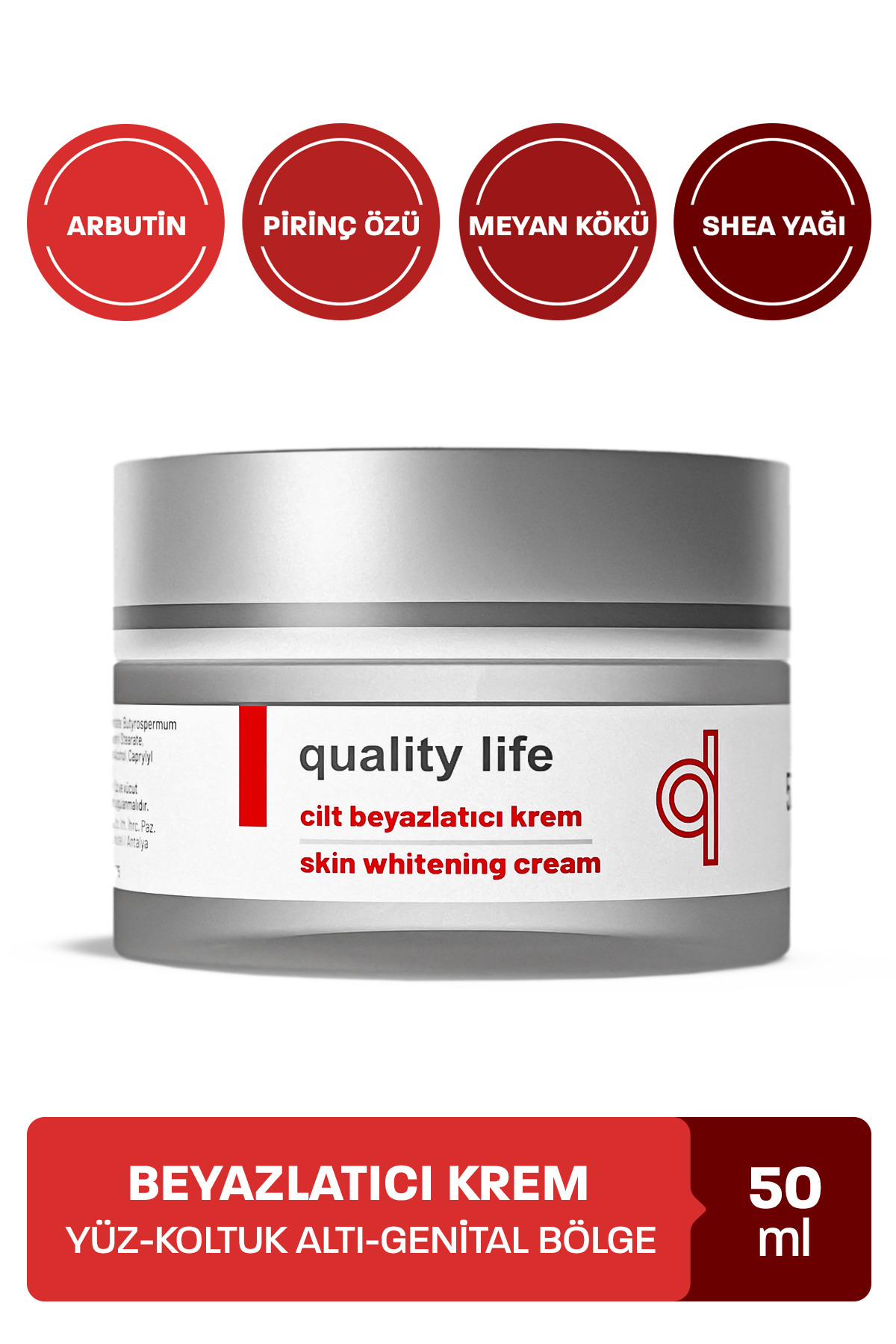 Cilt Beyazlatici Aydinlatici Bakim Kremi Quality Life Cilt Beyazlatici Krem, cildi dogal bir sekilde beyazlatmaya yardimci olan ve renk degisikliklerini dengelemeye odaklanan özel bir formülle tasarlanmistir.
