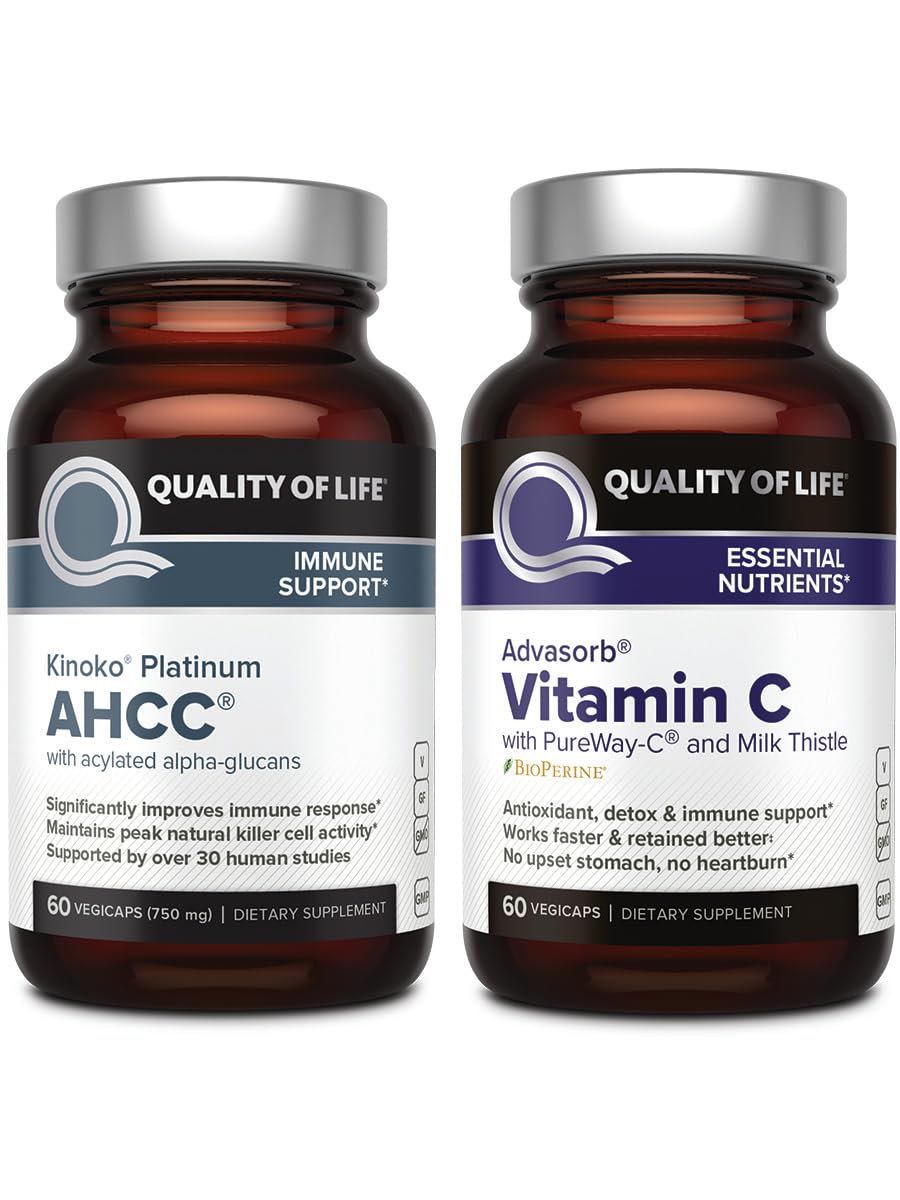 Quality of Life - Powerful Immune Support Bundle - Features Kinoko Platinum AHCC and Advasorb Vitamin C