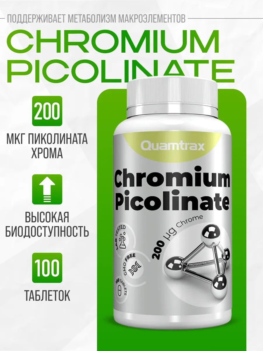 | Комплектация | Quamtrax - Chromium Picolinate (200mcg) 100t; пиколинат хрома 100 таблеток |