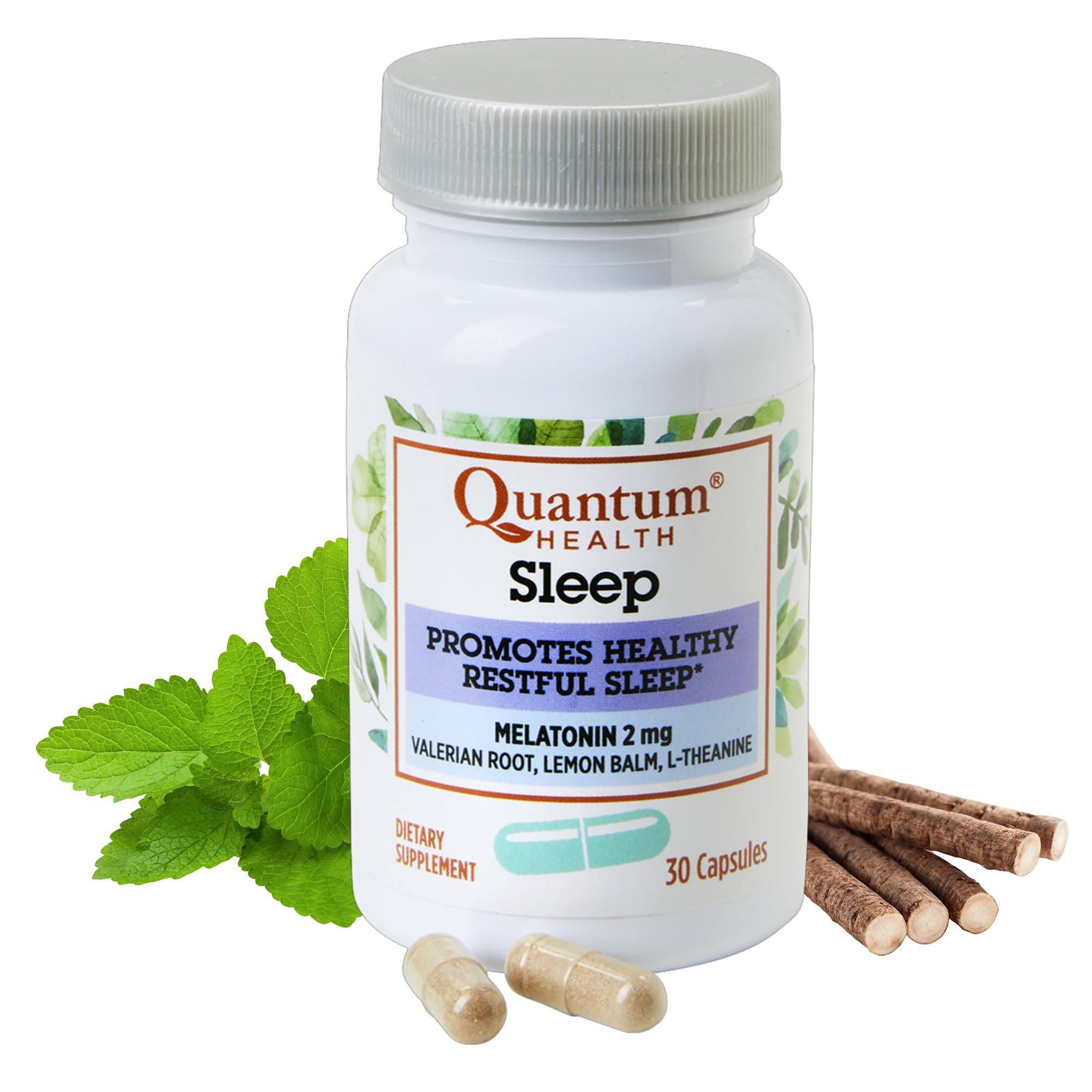 Quantum Health Sleep Melatonin 2mg Healthy Restful Sleep Support Blend with Relaxing Valerian Root Lemon Balm & L Theanine Daily Mind & Body Well Being for Women & Men - 30 Capsules 30 Count (Pack of 1)