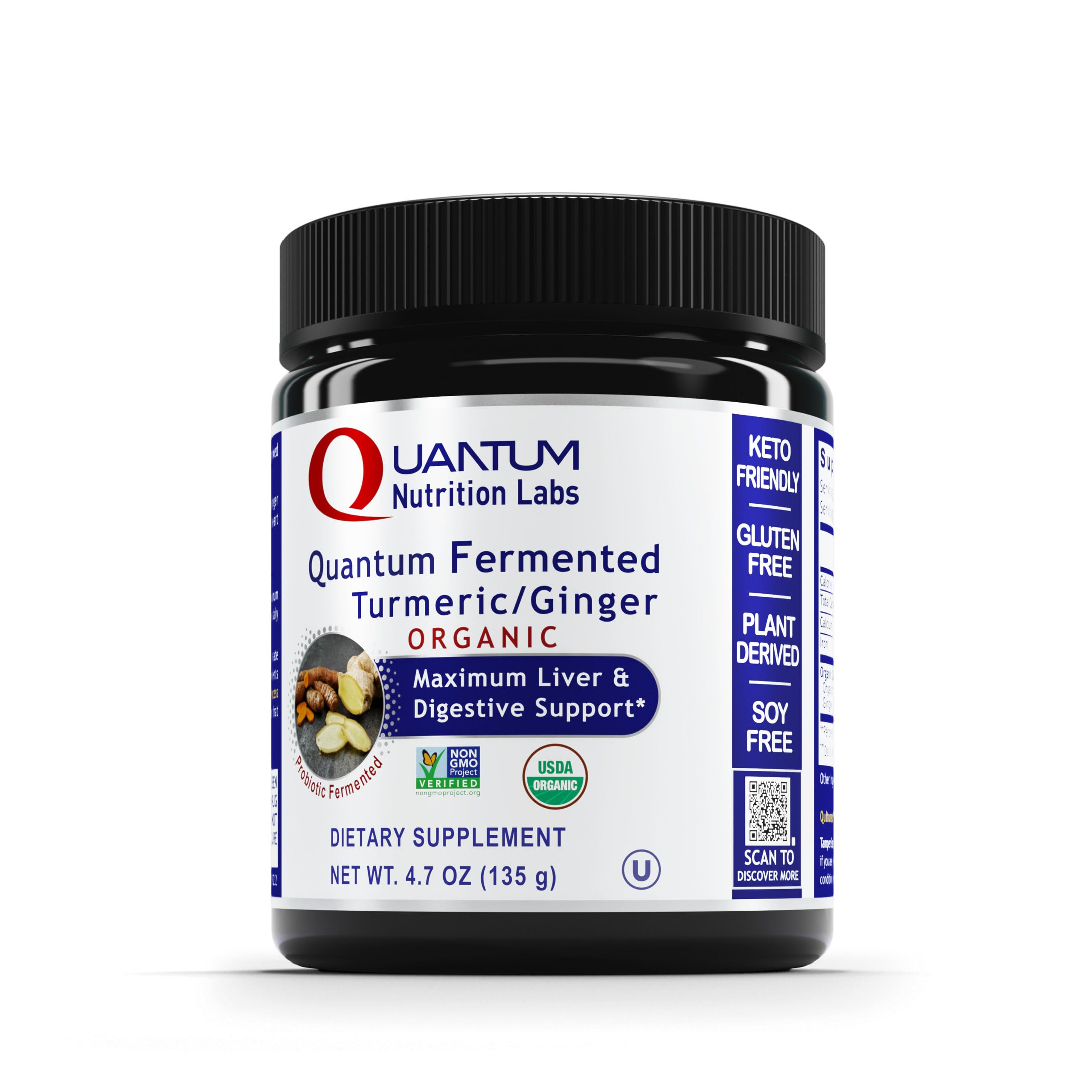 THE QUANTUM DIFFERENCE: At Quantum Nutrition Labs, we pride ourselves in creating well-researched, natural supplements free from undesirable additives packed with health benefits. RECOMMENDED USE - To promote daily immune digestive health, mix 1 scoop of our ginger turmeric supplement powder in food or drinks or as directed by a health professional. ACTIVE CURCUMINOIDS - Turmeric is naturally rich in curcuminoids which have antioxidant properties that help to promote cell health and overall wellbeing. SUPERIOR FORMULA - When creating our turmeric ginger supplement, we use our signature probiotic-fermented delivery system to increase bioavailability for optimal digestion and absorption. TURMERIC AND GINGER SUPPLEMENT - Quantum Nutrition Labs Quantum Fermented Turmeric Ginger is designed to support digestive health, liver health, and a healthy inflammatory response.