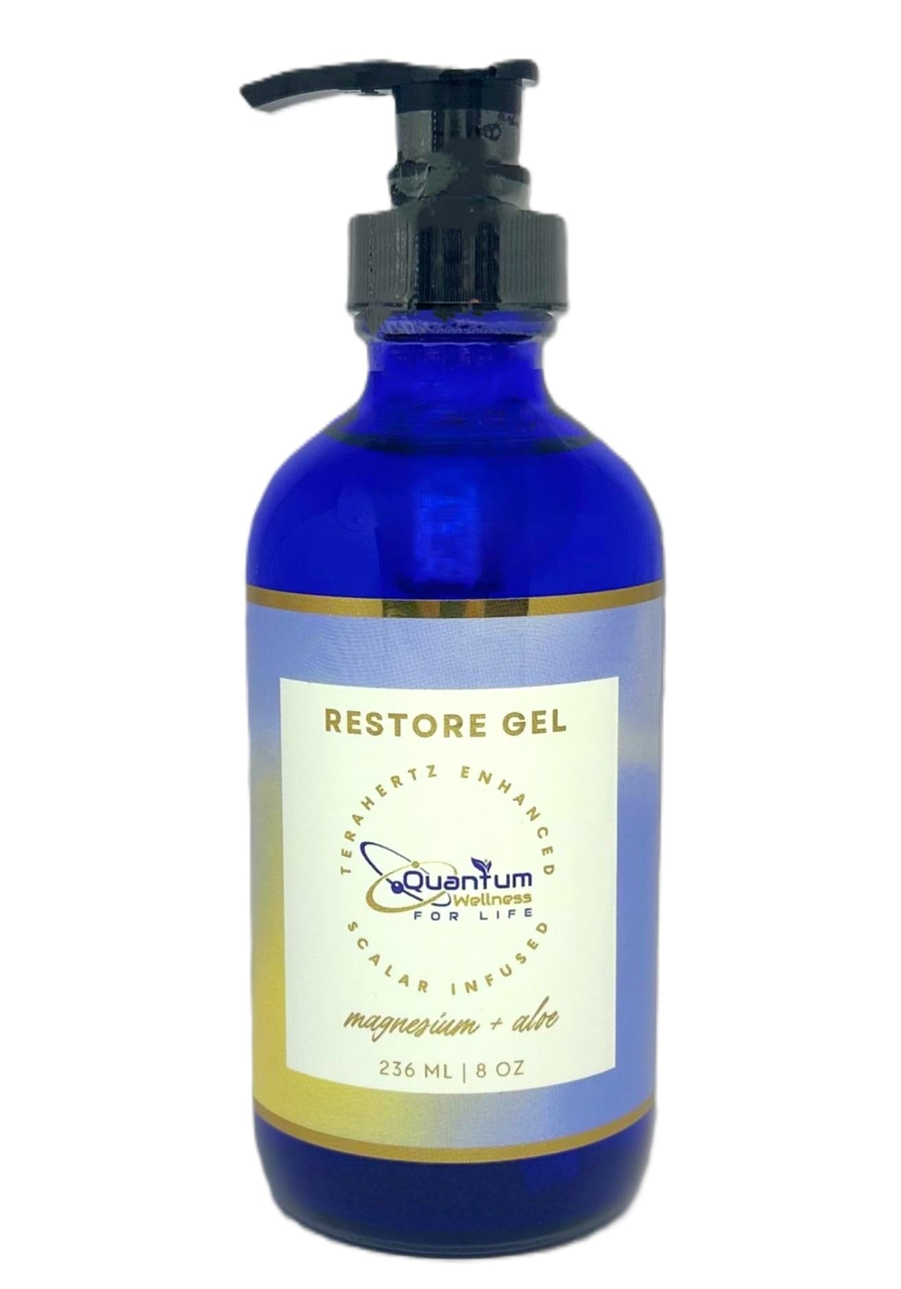 Quantum Wellness for Life Restore Gel - Aloe and Magnesium Scalar Energy Infused (8 oz Glass Pump Bottle)