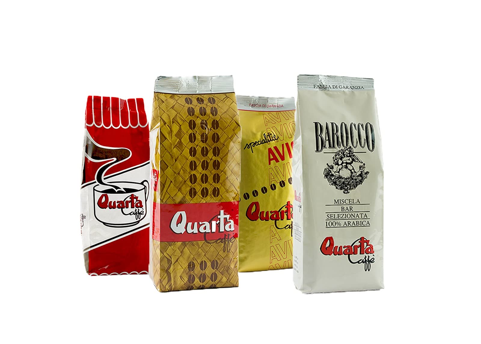 QUARTA Caffe' Box Dégustation : Variété LA Rossa - STUOIA - AVIO ORO - BAROCCO (4X0,250gr) Mélange fin de café transformé au Salento, Pouilles