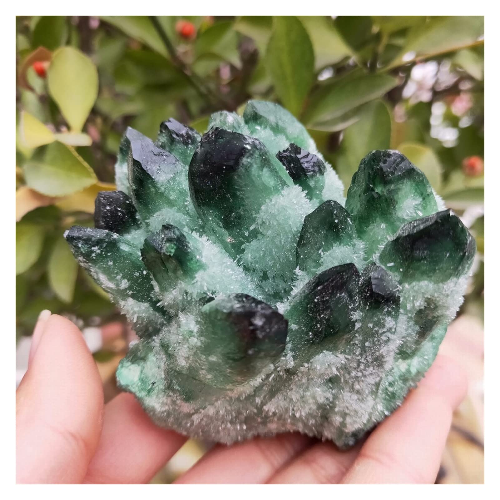 ESYEM Item: natural green Phantom crystal cluster Material:natural green crystal cluster Technique:Natural Style:Feng Shui Use:Wedding Decoration Gift Themecluster usage home decoration Color: Green weight:about 500-600g Attention: Size may be slight inaccuracy due to different batches of the products, or hand measurement, thanks for your understanding!Pure natural quartz crystals can be used as gifts, collectible jadeware and home decoration. Free shape, random hair. Each natural quartz cluster is , so its shape and size Titanium-coated geodetic clusters may differ from photography. Natural stone, natural texture, beautiful and ornamental.