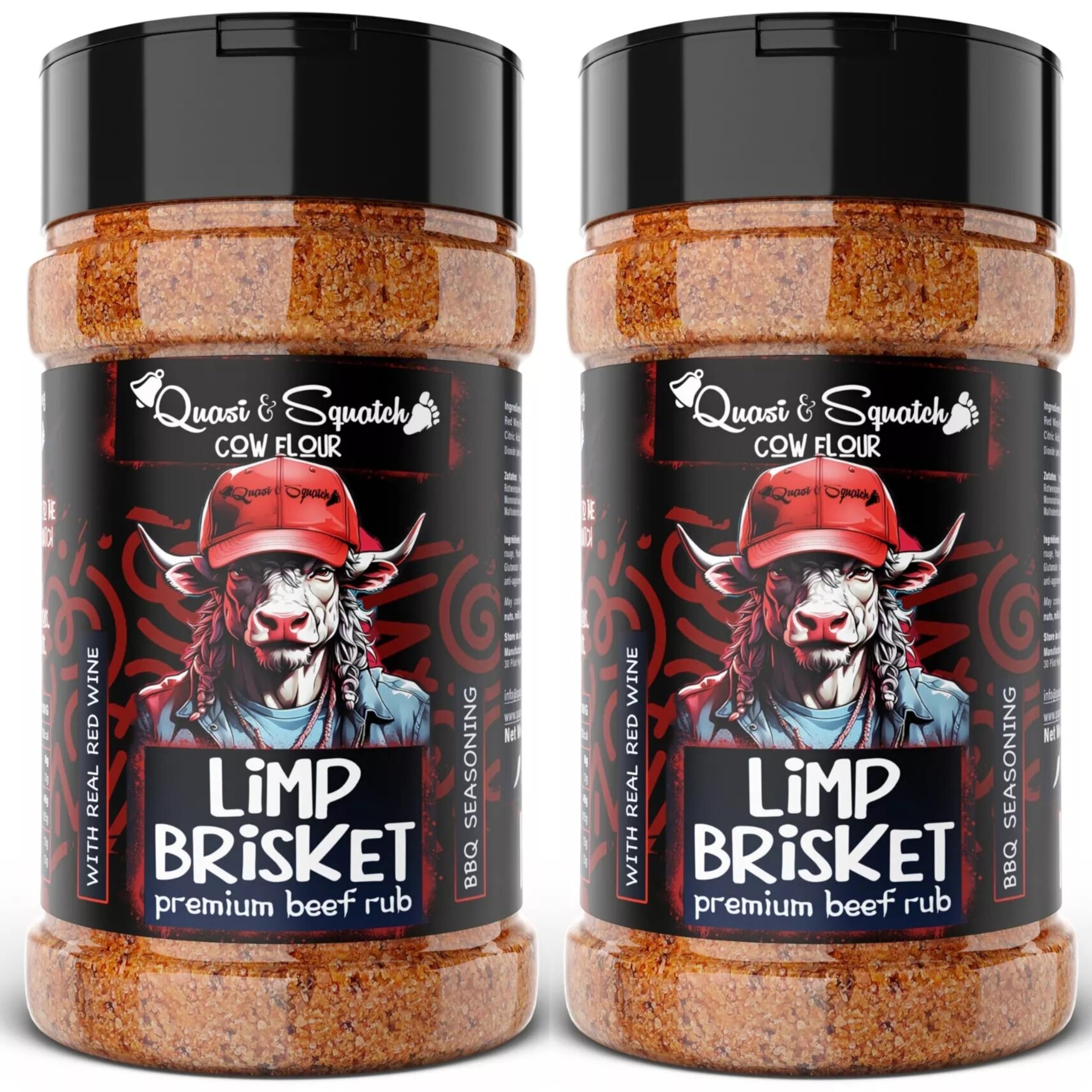 Discover the essence of barbecue with the new "Brisket Limp" from Quasi Squatch, a culinary creation that embodies the spirit of barbecue passion and innovation. Made from the finest ingredients, this bold blend of peppery red wine and classic barbecue spices delivers a distinctive taste that is both robust and refined. Committed to natural quality, it contains no artificial ingredients, preservatives, or E numbers. Perfect for any meat, especially brisket, "Brisket Limp" enhances flavors with its rich and complex profile, making every barbecue occasion extraordinary. Immerse yourself in a world where tradition meets unique style with Quasi Squatch. INGREDIENTS Bell pepper, garlic, onion, pepper, salt, sugar, red wine powder, real grape powder, natural flavorings, citric acid, yeast, monosodium glutamate, paprika, silicon dioxide (anti-caking agent), maltodextrin, mustard, celery (allergens) DIRECTIONS Gently sprinkle the BBQ rub over your barbecue creations, ensuring every bite is infused with delicious flavor. See moreQuasi Squatch Lot de 2 sachets de 2 grands flacons pour barbecue 440 gDESCRIPTION DU PRODUIT DESCRIPTION DU PRODUIT Découvrez l'essence du barbecue avec le nouveau « Brisket Limp Brisket » de Quasi Squatch, une création culinaire qui incarne l'esprit de la passion et de l'innovation du barbecue. Fabriqué à partir des meilleurs ingrédients, ce mélange audacieux de vin rouge poivré et d'épices barbecue classiques, offrant un goût distinctif à la fois robuste et raffiné. Engagé pour une qualité naturelle, il ne contient aucun ingrédient artificiel, conservateur ou numéro E. Parfait pour toute viande, en particulier la poitrine, la « Brisket Limp » améliore les saveurs avec son profil riche et complexe, rendant chaque occasion de barbecue extraordinaire. Plongez dans un monde où la tradition rencontre un style unique avec Quasi Squatch. INGRÉDIENTS Poivron, ail, oignon, poivre, sel, sucre, vin rouge en poudre, véritable poudre de raisin, arômes naturels, acide citrique, levure, glutamate monosodique, paprika, dioxyde de silicium (anti-agglomération), maltodextrine, moutarde, céleri (allergènes) MODE D'EMPLOI Saupoudrez doucement le frottement du barbecue sur vos créations de barbecue, en veillant à ce que chaque bouchée soit infusée de délicieuse. Voir plus