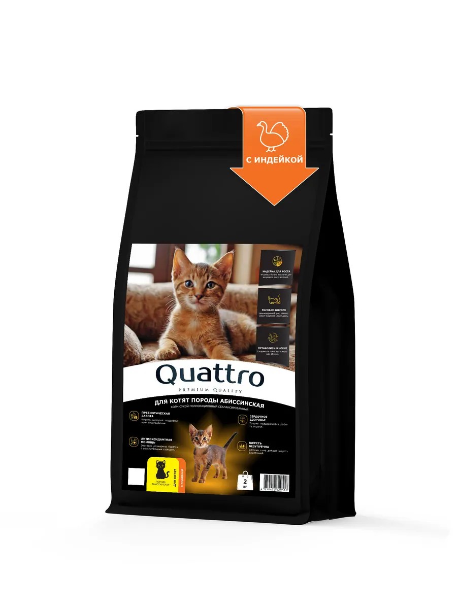 | Комплектация | Корм для котят Квадро, корм для котят Quattro, породы абиссинская, корм сухой |
