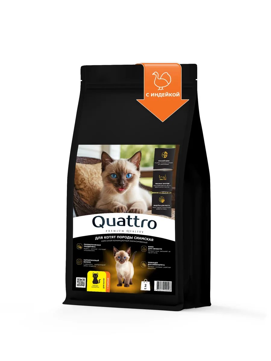 | Комплектация | Корм для котят Квадро, корм для котят Quattro, породы сиамская, корм сухой |