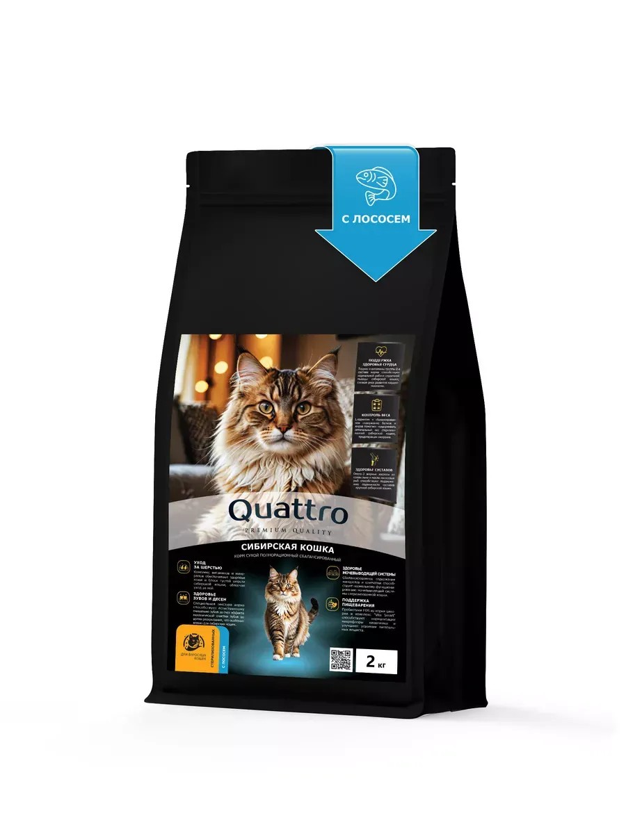 QUATTRO Корм для кошек породы Сибирская кошка, с лососем, 2 кг