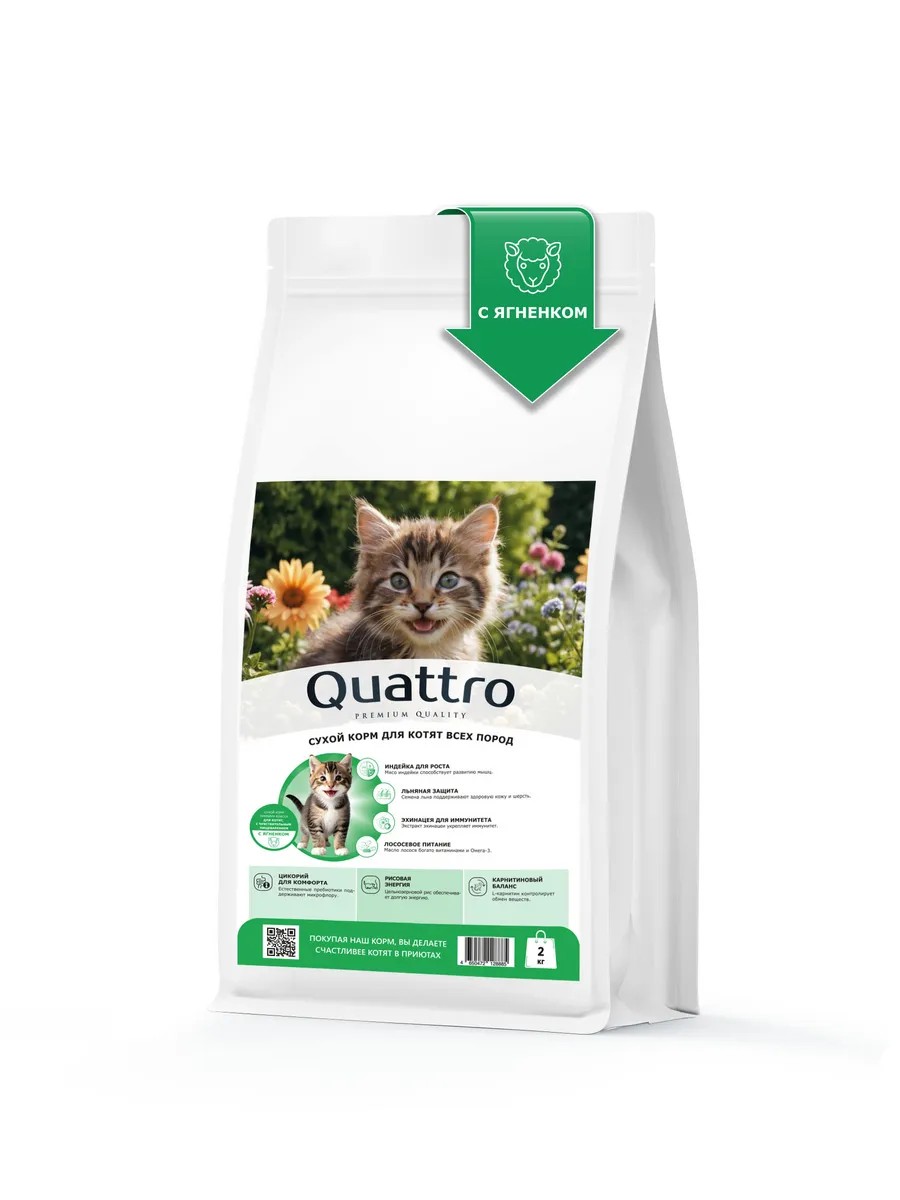 | Комплектация | Корм для котят Квадро, корм для котят Quattro, породы котят всех пород корм сухой |