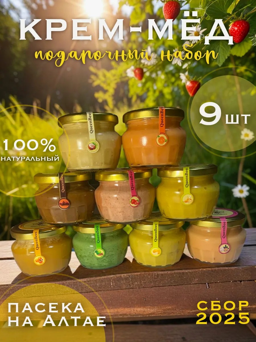| Комплектация | 9шт. баночек по 200 грамм крем-меда(суфле) |