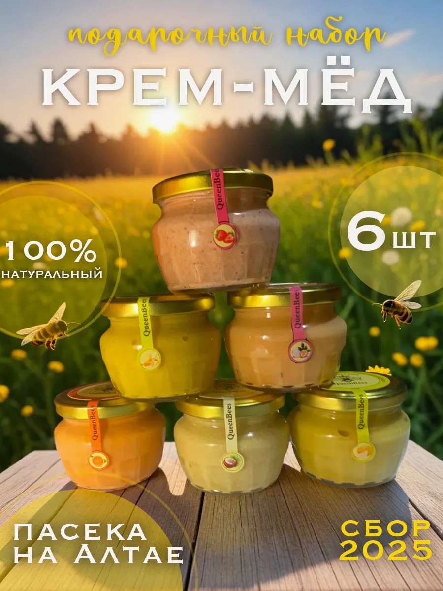 | Комплектация | 6 шт. стеклянных баночек по 200 грамм крем-меда в коробке |