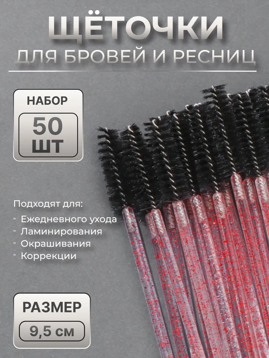 Набор щёточек для бровей и ресниц, 9,5 см, 50 шт. Универсальная щёточка станет незаменимым инструментом при профессиональной работе с ресницами и бровями. Используйте изделие для нанесения составов при ламинировании, наращивании или окрашивании ресниц и бровей. Щёточка необходима для ежедневного ухода. Она поможет поддерживать опрятный вид бровей и ресниц на протяжении всего дня.