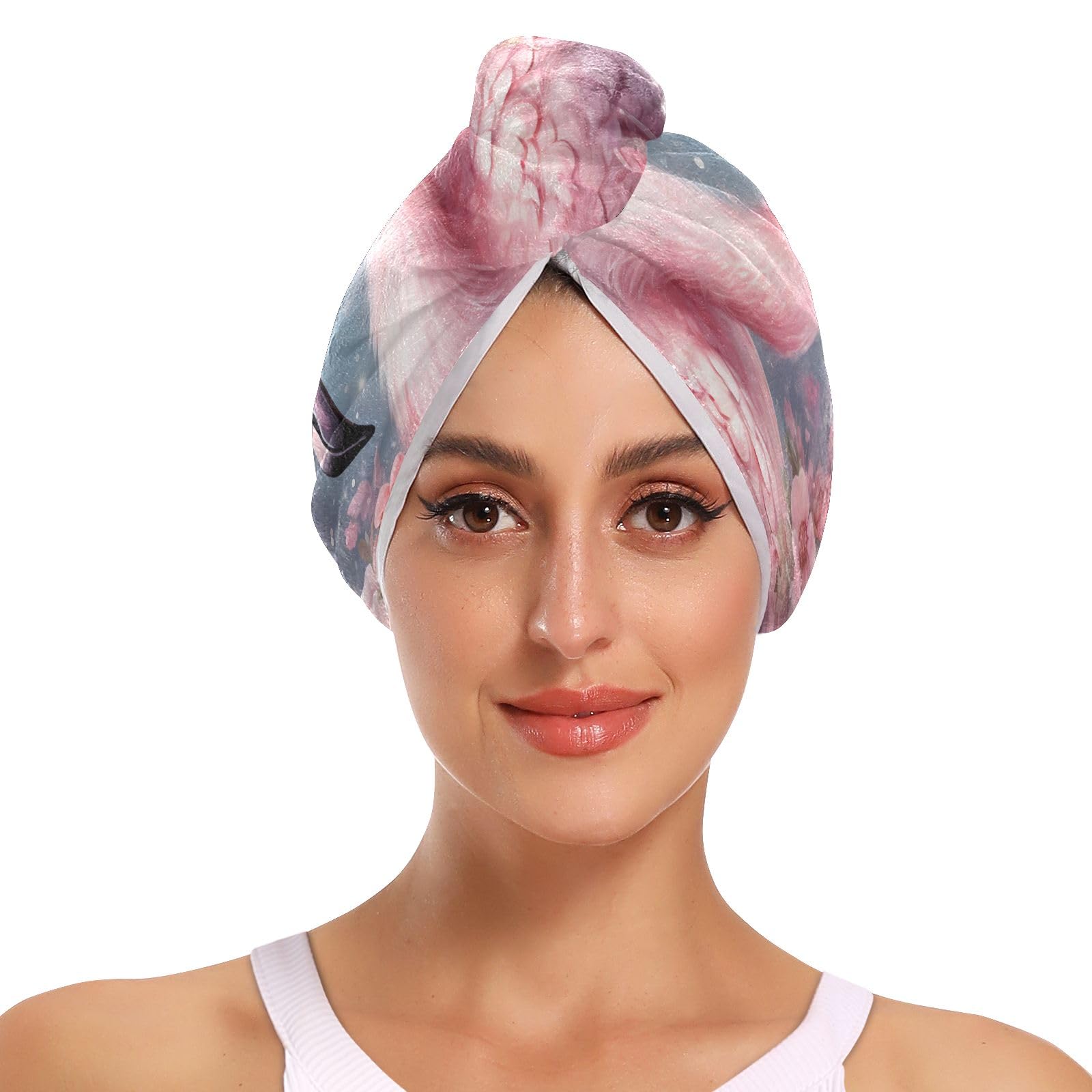 Queen Flamingo Flowers Hair Towel 2 Pack Super Absorbent Hair Drying Towel Quick Dry Hair Turbans Head Towel with Button Twisty Wrap for Women Girls