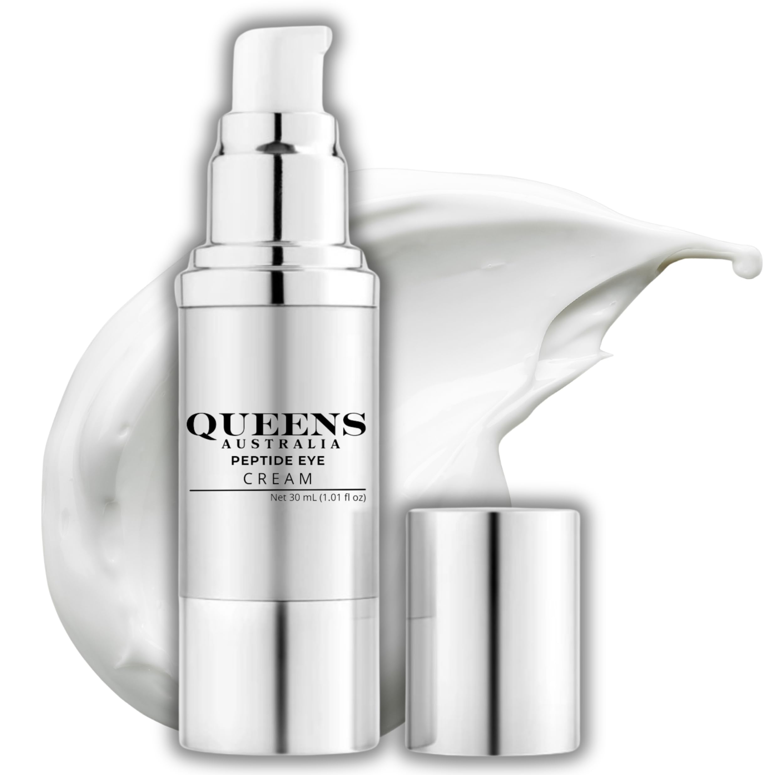 Queens Australia Peptide Eye Cream – Lightweight Hydration for a Refreshed Eye Area Revitalize your skincare routine with Queens Australia Peptide Eye Cream, crafted to gently care for the delicate under-eye area. This fragrance-free, dermatologist-tested formula offers lightweight hydration that helps improve the look of tired eyes, fine lines, and puffiness with regular use. Formulated with Peptides Our eye cream features Peptides known for supporting skin elasticity and hydration. When used consistently, this lightweight formula helps improve the appearance of under-eye skin texture, leaves the eye area looking more rested, smoother, and hydrated Hydrating Eye Cream for Day Night Use This cream draws moisture into the skin, helping to keep the under-eye area looking soft, plump, and well-nourished. Perfect as part of your morning and evening routine, it layers effortlessly under makeup or moisturizers. Supports a Brighter-Looking Eye Area This non-greasy formula helps visibly even the skin tone around the eyes and reduces the appearance of dullness and fatigue. With continued use, the eye area appears more radiant and well-rested. Gentle Formula for All Skin Types Ideal for daily use, this eye cream is fragrance-free, paraben-free, and suitable for all skin types including sensitive skin. It absorbs quickly without leaving residue, making it a reliable choice for everyday skincare. Made in Australia – Clean, Thoughtful Skincare Proudly made in Australia, Queens Australia Peptide Eye Cream is vegan, cruelty-free, and crafted with high-quality ingredients. Our commitment to clean beauty ensures a product that aligns with your wellness-focused lifestyle. How to Use: 1. After cleansing, gently pat dry the skin. 2. Apply a small amount to the under-eye area using your ring finger. 3. Tap gently until fully absorbed. 4. Use morning and night as part of your daily skincare routine. Give your under-eye area the gentle, nourishing care it deserves with Queens Australia Peptide Eye Cream Your daily formula for hydration and balance.Fast-Absorbing Non-Greasy Formula - Lightweight and non-comedogenic, this hydrating eye cream absorbs quickly into the skin, delivering moisture without heaviness—perfect under makeup or on bare skin. Gentle Daily Eye Cream for All Skin Types - This fragrance-free eye cream is suitable for sensitive skin. Ideal for daily use as part of your morning or evening skincare routine. Refresh Tired-Looking Eyes - This lightweight eye cream helps reduce the appearance of puffiness and dark circles, leaving the eye area visibly brighter and more energized with consistent use. Visibly Smooths Softens Fine Lines - Formulated with peptides and hyaluronic acid, this under-eye cream helps soften the look of fine lines and improve the appearance of skin texture for a youthful glow. Overnight Hydration Care - This peptide eye cream helps visibly refresh and hydrate the delicate under-eye area while you sleep. Wake up to smoother-looking skin and a more rested appearance.
