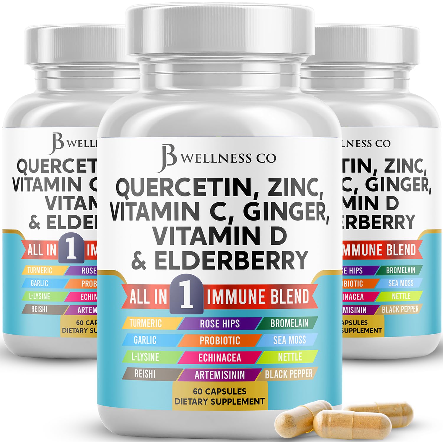 Quercetin Zinc Vitamin C Vitamin D Bromelain Elderberry - Nettle Supplement with Artemisinin Sea Moss Echinacea - 180 Count 60 Count (Pack of 3)